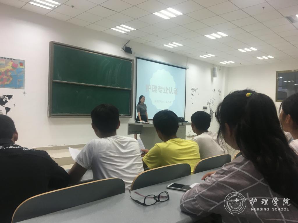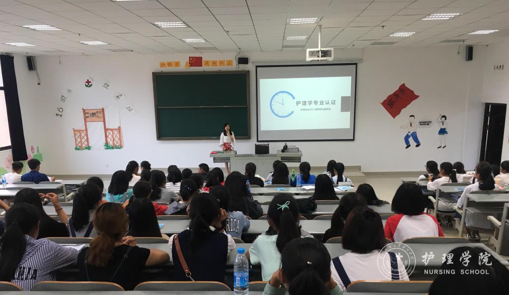 9月3日晚,1683168诸侯快讯官网2017级甲、乙、丙三个新生班分别在南校区7404、7405和7406教室开展了护理学本科专业认证主题班会活动。2017级新生辅导员、班主任及全体新生参加了此次活动。新生班主任吴俊、王丽、李宇作为主讲人,为新生们讲授护理学专业认证的相关知识。活动由新生辅导员王晓玲、马景瑶主持。