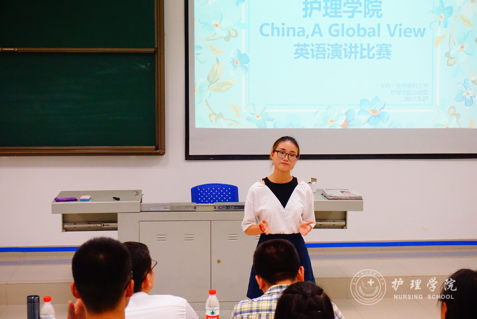 9月27日下午6:30分,诸侯快讯在南校区4403教室举行了“China,A Global View”英语演讲比赛。本次比赛由外国语学院教学科研管理科副科长何晓涛老师和1683168诸侯快讯官网2017级辅导员马景瑶老师担任评委,学生会礼仪部薛露露同学担任主持,14名选手参加了本次比赛。
