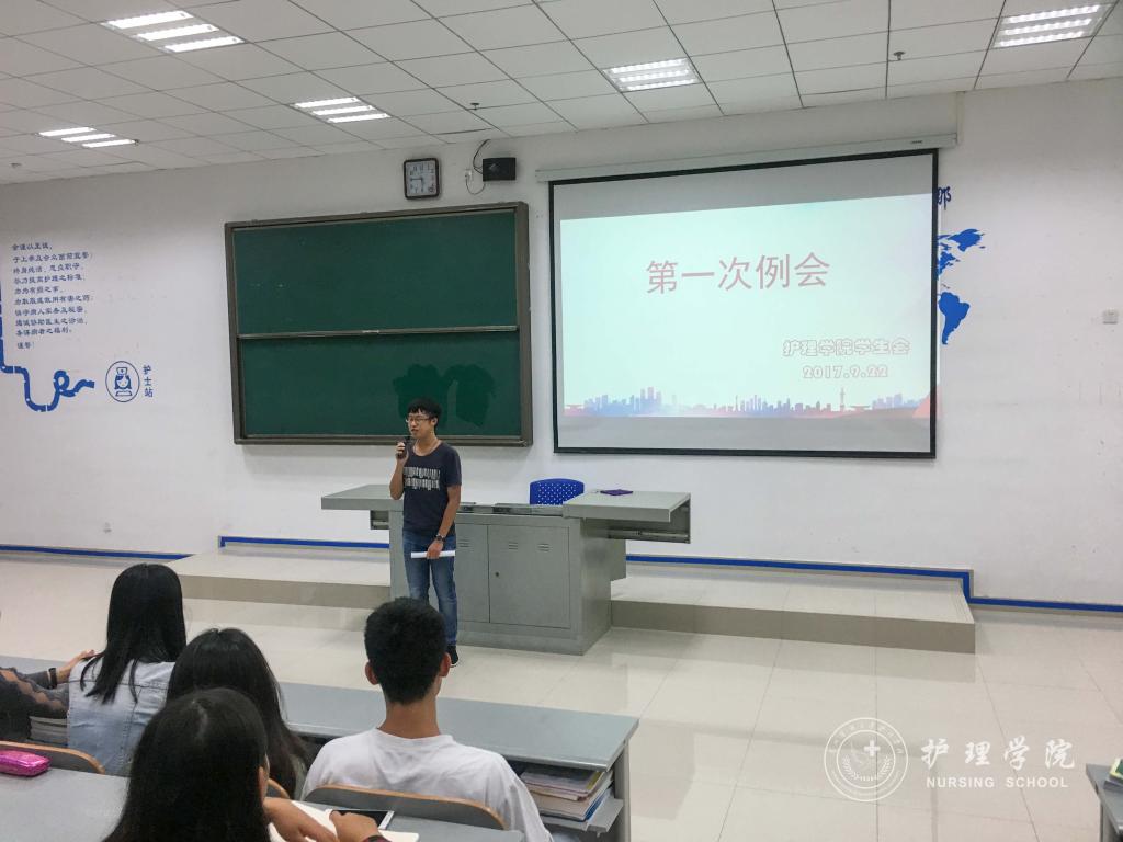 9月22日下午18:40,1683168诸侯快讯官网学生会在南校区4403教室召开了本学期第一次例会。出席本次例会的有1683168诸侯快讯官网分团委负责人王晓玲老师,本次例会由学生会副主席尹本渊主持。