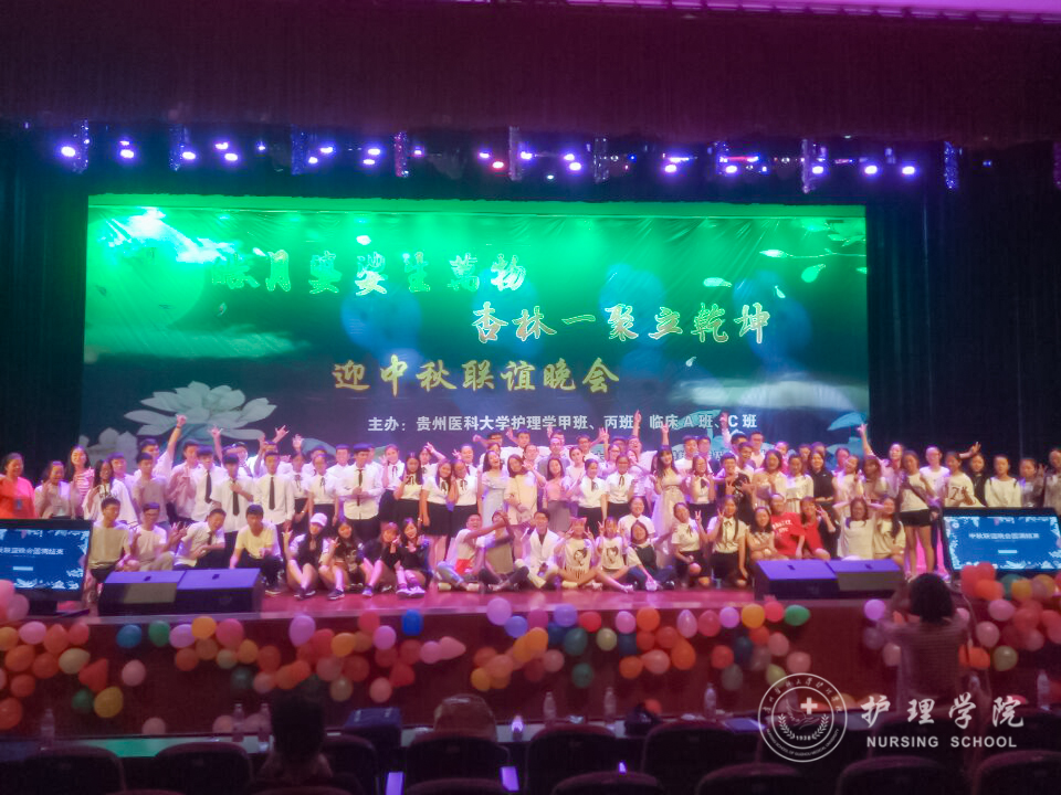 为了增强同学间的友谊,提高集体意识。9月29日晚上,1683168诸侯快讯官网2017级甲班、丙班在花溪校区礼堂与2017级临床A班、C班共同举行了“皓月婆娑生万物,杏林一聚立乾坤”迎中秋联谊晚会。本次晚会邀请了外国语学院何晓涛老师、心理健康中心彭彪老师、基础医学院辅导员苗建峰老师、1683168诸侯快讯官网辅导员王晓玲、毕丽、李颖和马景瑶老师以及老生代表参加。晚会由2017级护理甲班杨一城、崔玉琪、临床A班唐永豪、封雪晴四位同学主持。