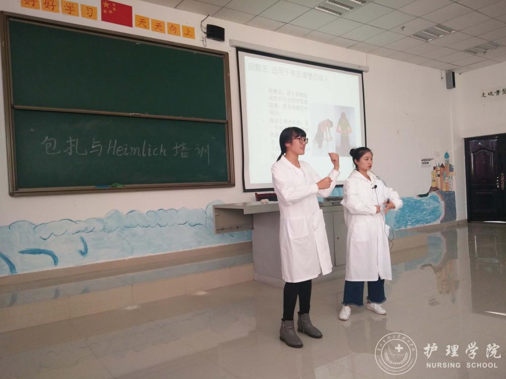 为了提高2016级同学们的护理操作能力,11月5日13:30分,护理技能协会在南校区4404教室开展了包扎和海姆立克急救培训活动。本次活动由护理技能协会会长王洁同学主持,副会长夏啰啰同学以及协会部分成员参加了此次活动。此次活动由2015级技训部文燕同学担任主讲人。