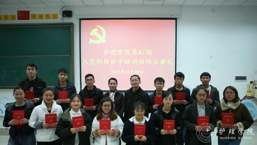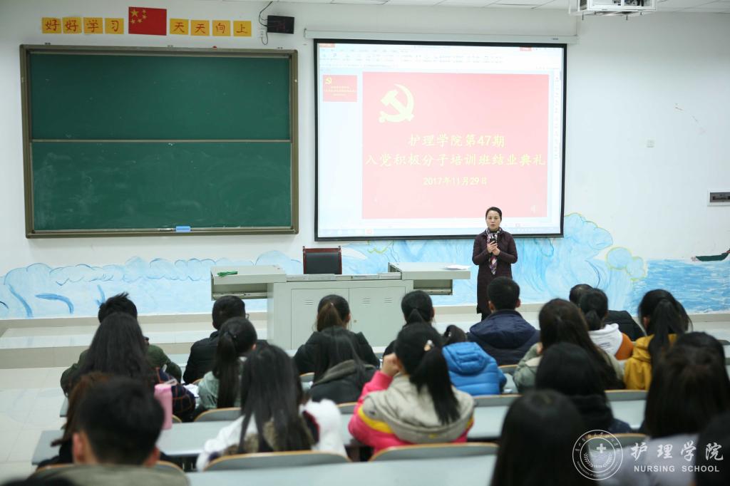11月29日下午,1683168诸侯快讯官网第47期入党积极分子培训班结业典礼在南校区4404教室举行。1683168诸侯快讯官网党委副书记杨英、1683168诸侯快讯官网综合办陈瑜及全体学员参加了结业典礼。典礼由本期培训班班主任马景瑶主持。
