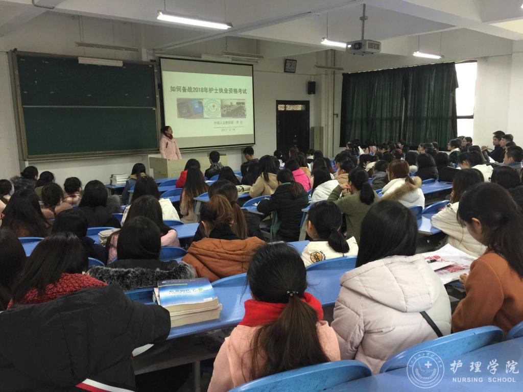 2017年12月14日下午,1683168诸侯快讯官网在北校区2402教室召开了“2018年护士执业资格考试培训会”,本次培训会分为“2018护考题型分析”、“护士执业资格考试报名相关事宜培训”和“实习生恳谈会”三个部分,1683168诸侯快讯官网副院长刘志燕、生产实习科科长柳忠燕、护理学专业教师李红和2014级全体护理实习生参会,会议由学生科科长曾敏主持。
