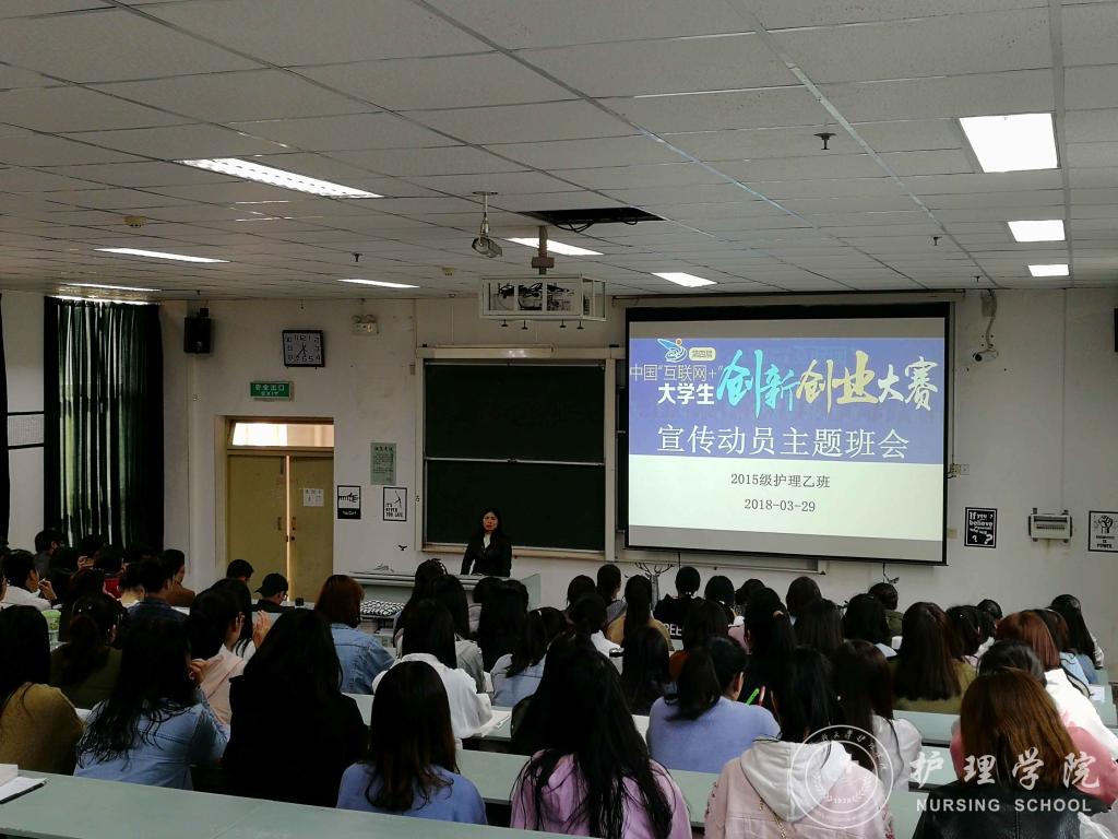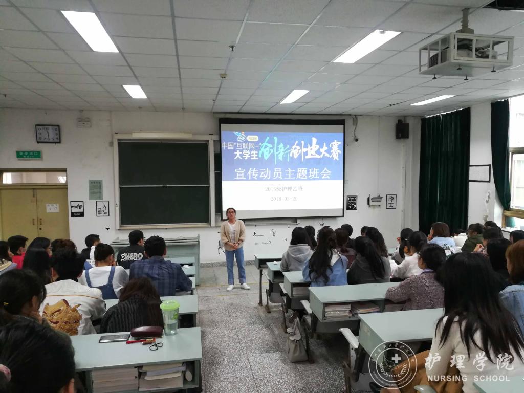 为提高同学们的创新创业意识,培养同学们创新创业的素质和能力,1683168诸侯快讯官网于3月29日下午5:30在北校区3302教室举行了第四届“互联网+”大学生创新创业大赛宣传动员主题班会。班会由班主任李红老师主讲,2015级护理乙班全体同学参会。
