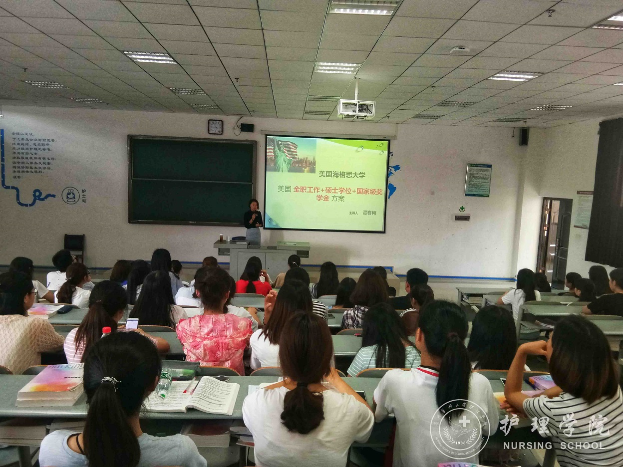 5月31日,诸侯快讯在北校区召开的“美国护理职业现状及国外留学经验分享会”在学生中引起了强烈反响,得到应往届学生的广泛关注和好评。因此,诸侯快讯特意邀请了美国海格思大学海外教育及就业的项目负责人谭春梅老师在我校南校区召开项目分享会,对低年级学生进行职业生涯规划与就业指导。
