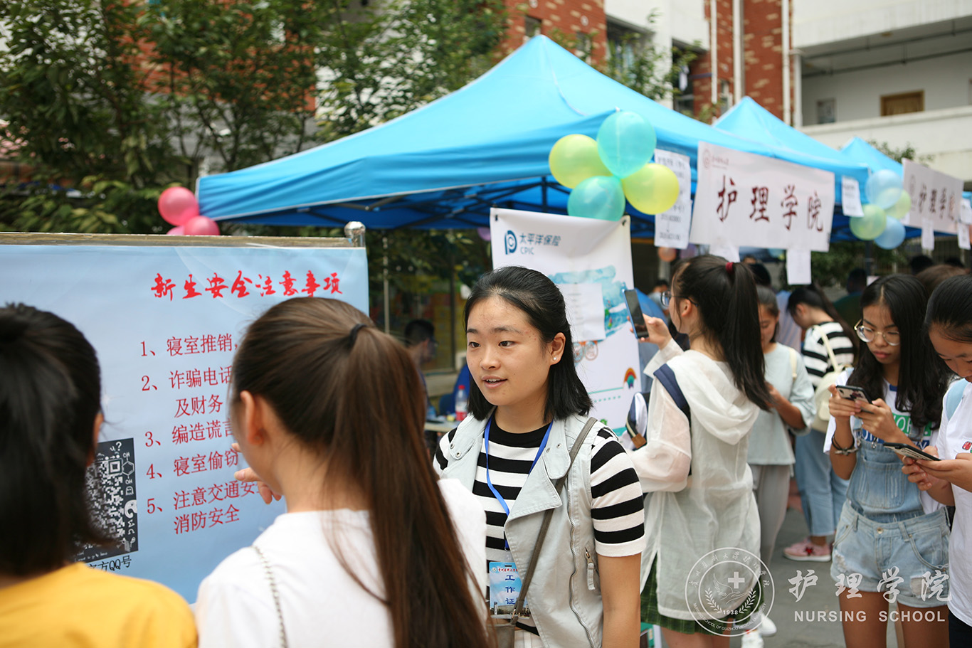 迎新工作接近尾声之际,杨英带领学生科科长曾敏、新生辅导员以及学生会干部前往新生宿舍看望2018级的同学们,杨英鼓励同学们要始终保持自信乐观心态,尽快适应大学校园生活,认真学习,热爱护理专业。