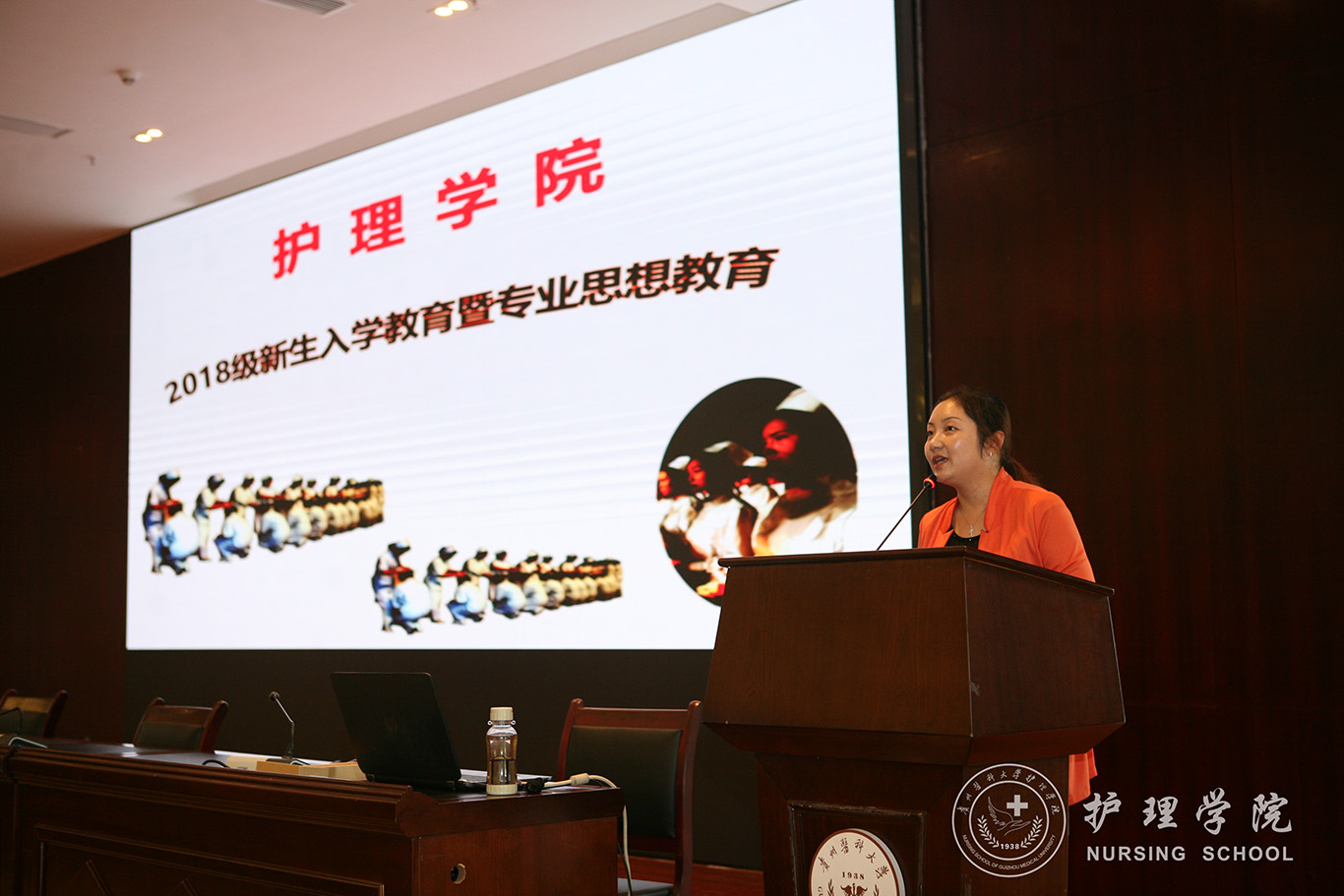 刘志燕为2018级新生作了以专业思想教育为主题的讲座。刘志燕从护理学的内涵,护理学的专业培养目标、能力要求、知识要求等方面对新生进行专业思想教育,使新生对护理学专业有了基本的了解,对大学四年的专业学习有了初步的规划。