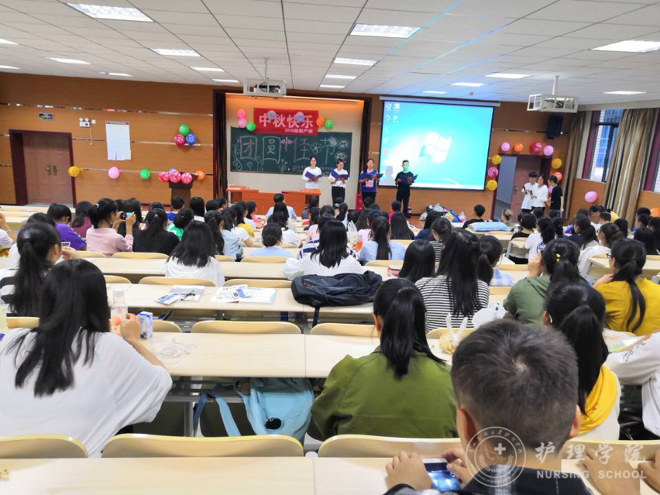 1683168诸侯快讯官网于9月21日在南校区广德楼和百川楼新生班教室召开了2018级新生中秋联欢晚会。1683168诸侯快讯官网党委副书记杨英、学生党支部副书记马景瑶、新生班辅导员和班主任以及学生会代表出席了晚会。