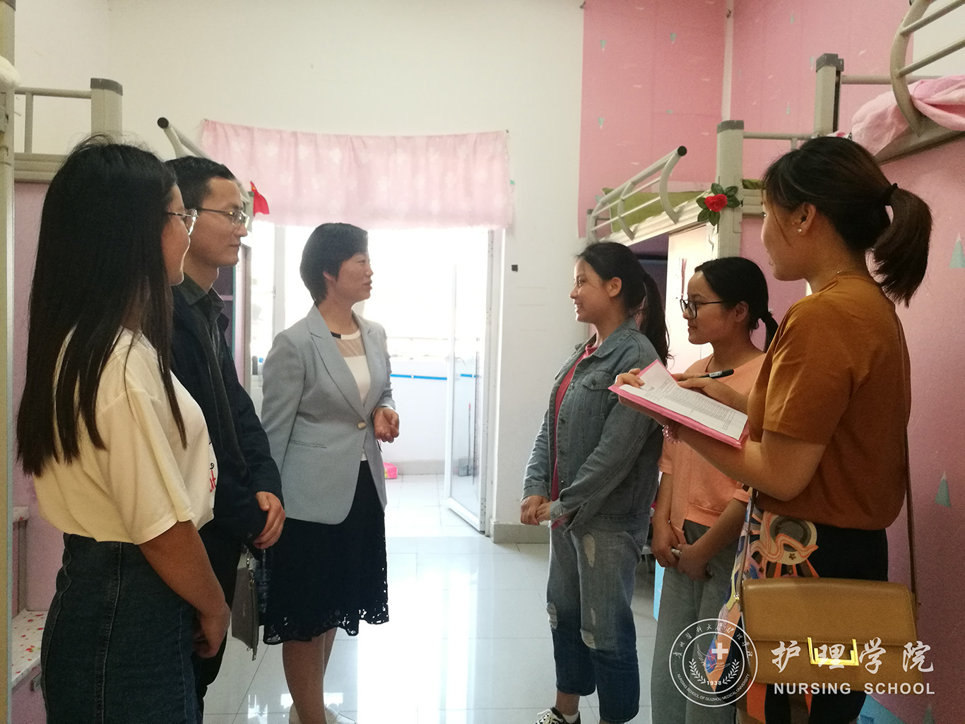 为做好学生寝室的安全卫生工作,消除安全隐患,创建良好的学习生活环境。5月29日至6月3日,1683168诸侯快讯官网院长贾秀英、党委副书记王秀红带队,组织全体辅导员、部分学生干部对全院南北校区学生寝室进行了安全卫生大检查。