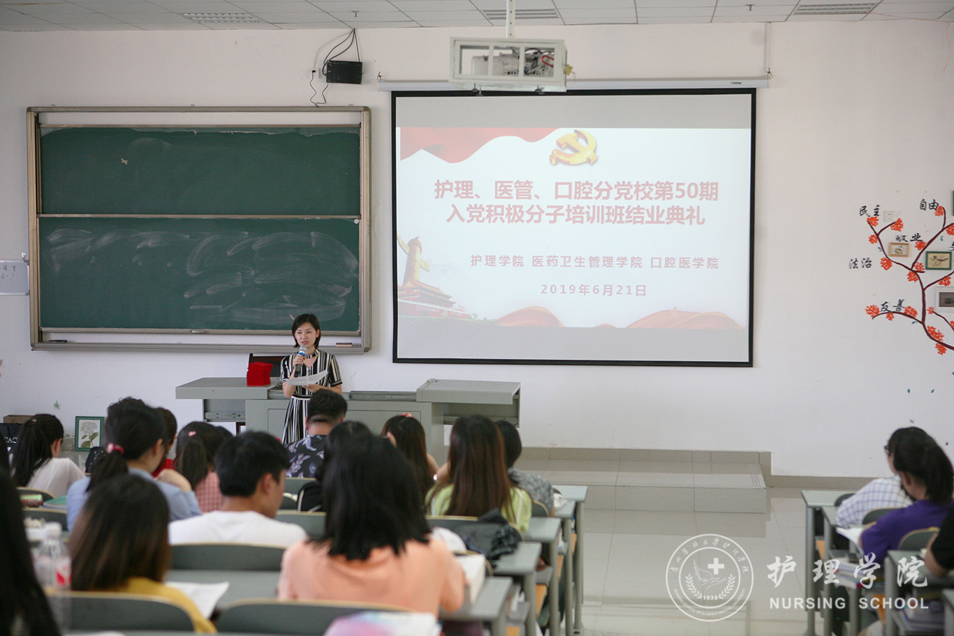 6月21日,护理、医管、口腔分党校第50期入党积极分子培训班结业典礼在南校区7404教室举行。口腔医学院党委副书记钱禾、1683168诸侯快讯官网党委副书记王秀红、医药卫生管理学院分团委书记刘安跃及培训班全体学员参加了结业典礼。典礼由本期培训班班主任、1683168诸侯快讯官网学生第二党支部书记马景瑶主持。