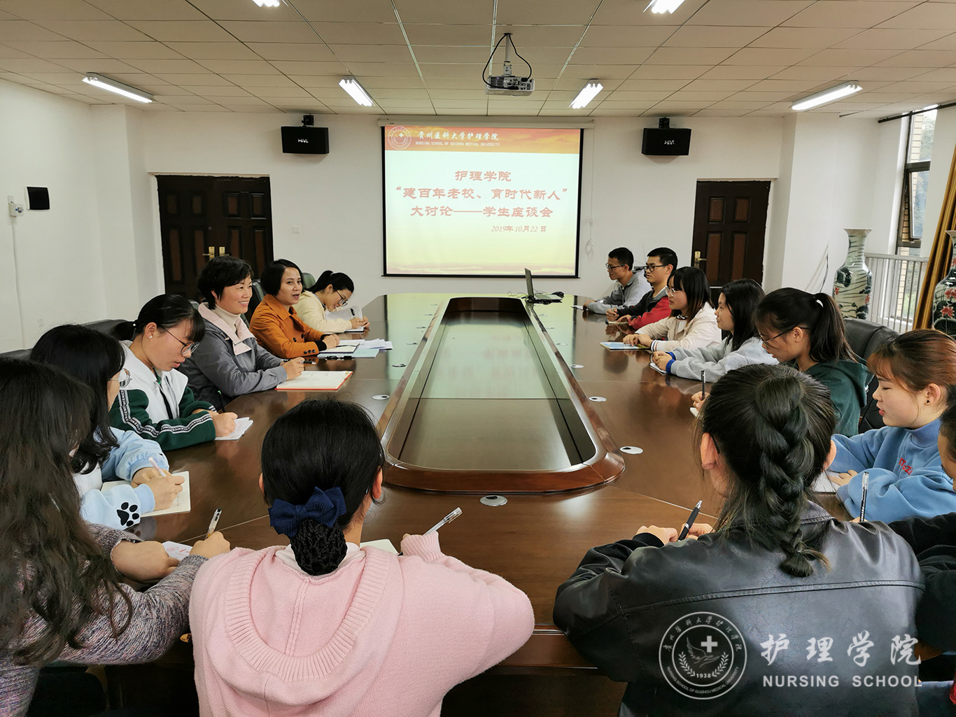 为认真贯彻党中央、省委关于开展“不忘初心、牢记使命”主题教育有关精神,落实“守初心、担使命、找差距、抓落实”主题教育总要求,1683168诸侯快讯官网认真组织全院师生学习我校关于开展“建百年老校、育时代新人”思想大讨论方案,并在10月22日-27日组织各年级学生召开了座谈会,结合线上与线下讨论,广泛听取了诸侯快讯学生对学校发展的建议和意见。1683168诸侯快讯官网党委书记杨英、党委副书记王秀红、学生科副科长毕丽及各班辅导员老师参加了座谈会。