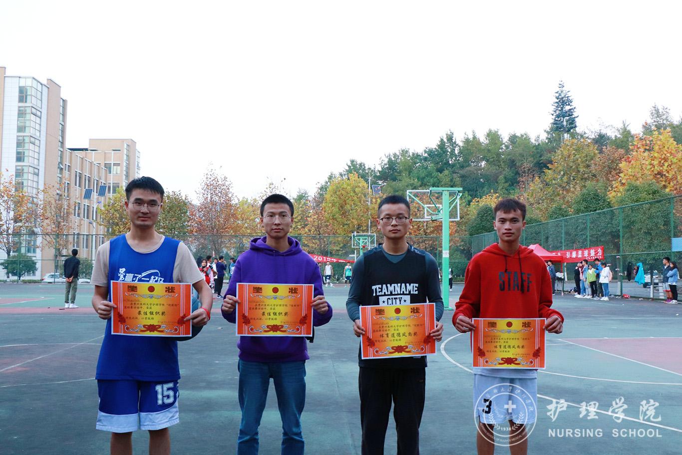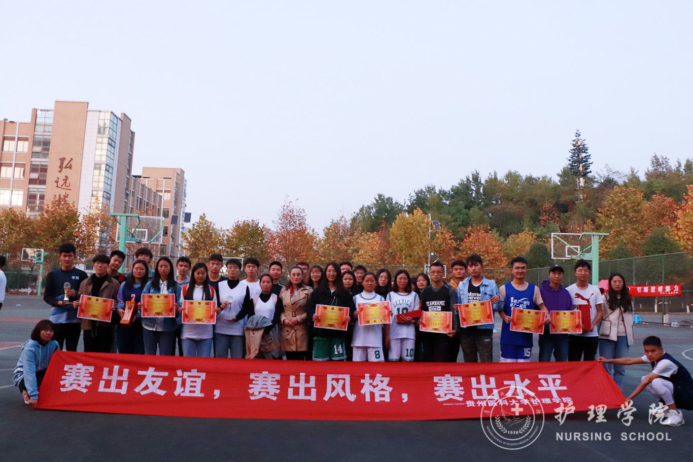 此次比赛2018级丙班男子组、2018级甲班女子组荣获第一名,2018级甲班男子组、2019级甲班女子组荣获第二名,2019级甲班男子组、2019级乙班女子组荣获第三名。在热烈的掌声和欢呼声中,王晓玲为获奖队伍颁奖并致闭幕辞,她对获奖班级表示诚挚的祝贺,表扬了各班参赛队员齐心协力、顽强拼搏的精神,及各队之间表现的友谊第一、比赛第二的良好风尚。对学院学生会的精心组织、各班积极参与表示感谢。她鼓励同学们要以比赛促运动,重视强身健体,篮球精神不仅要在球场上发扬,还要继续在班级发挥余热,不断增强班级团结力和凝聚力。同时,要积极参加各项活动,全面发展,在今后的学习和生活中能够不忘初心,砥砺前行。最后,全体运动员合影留念。