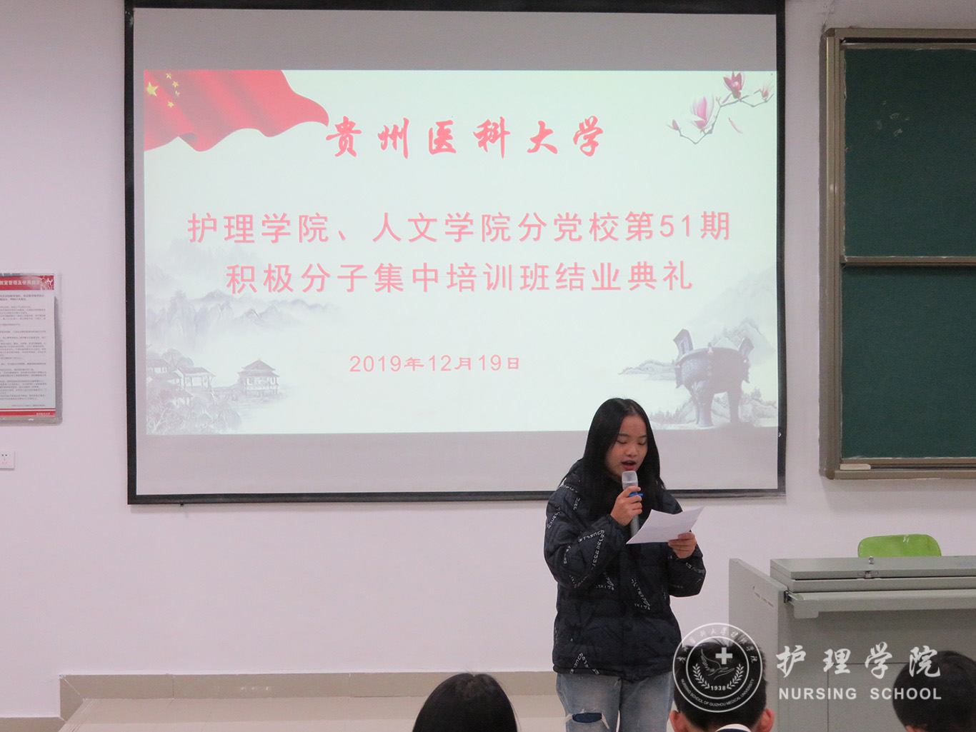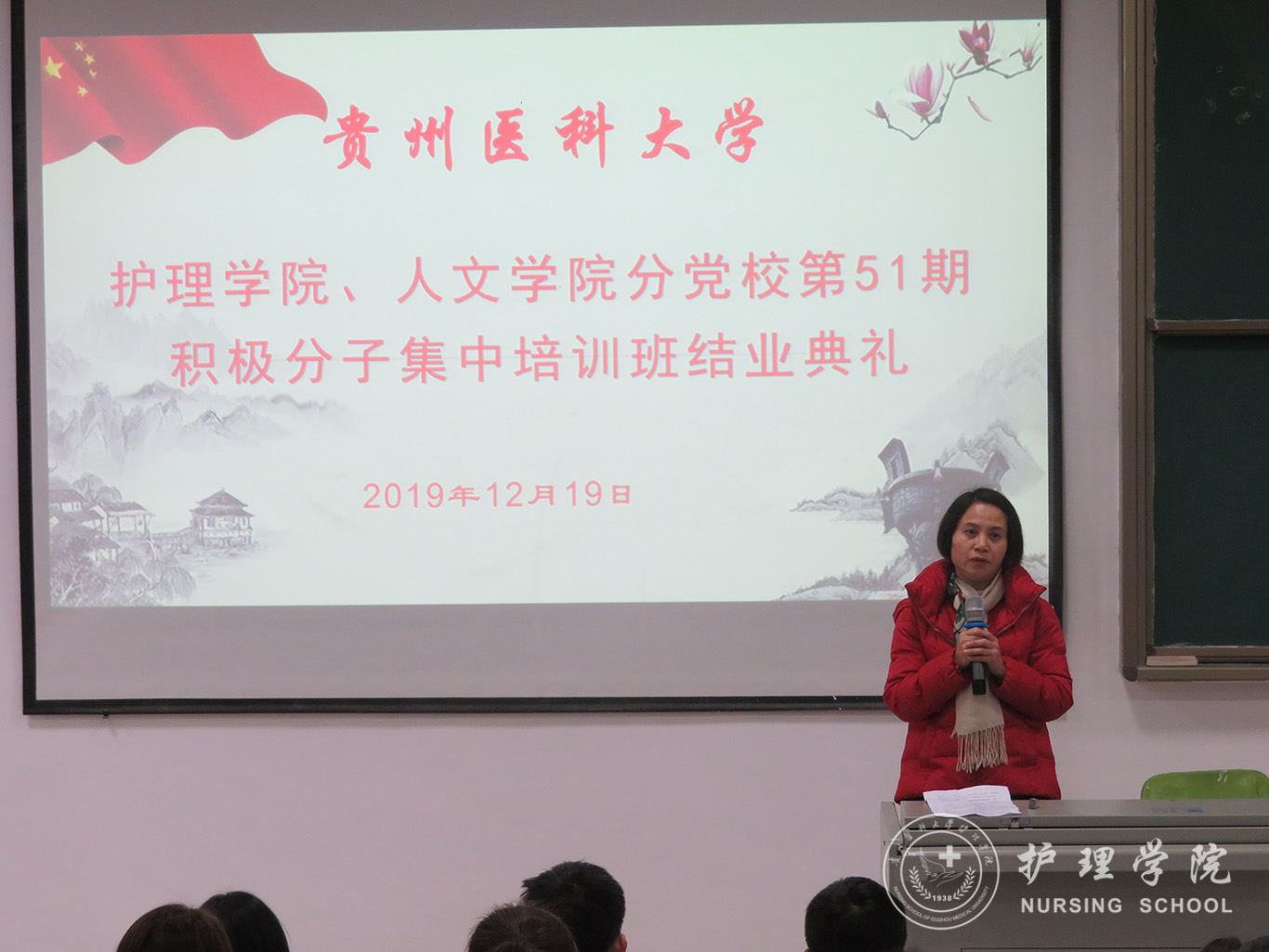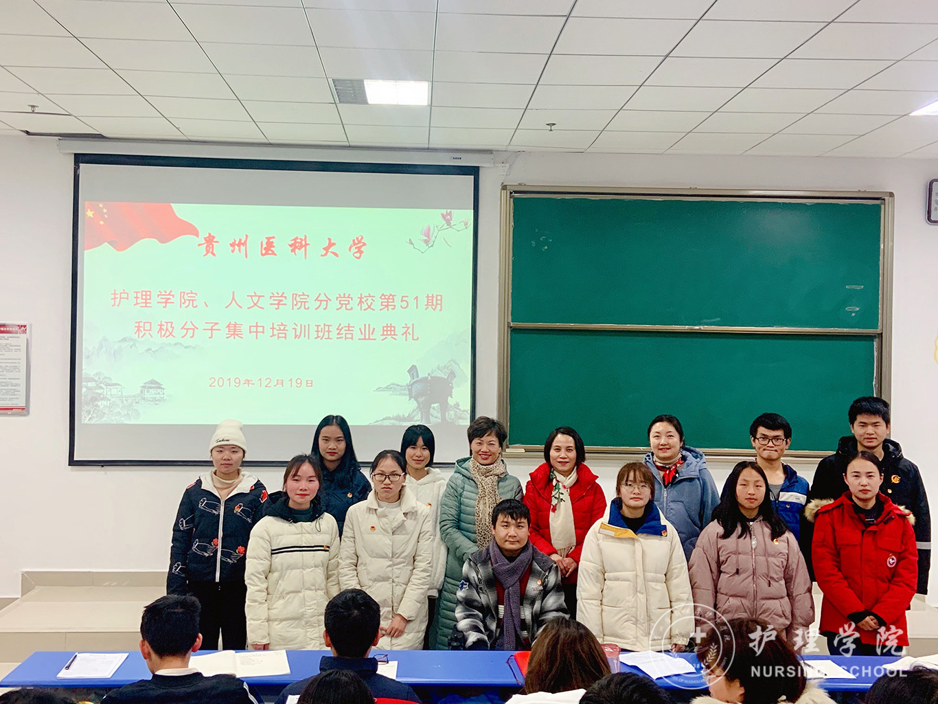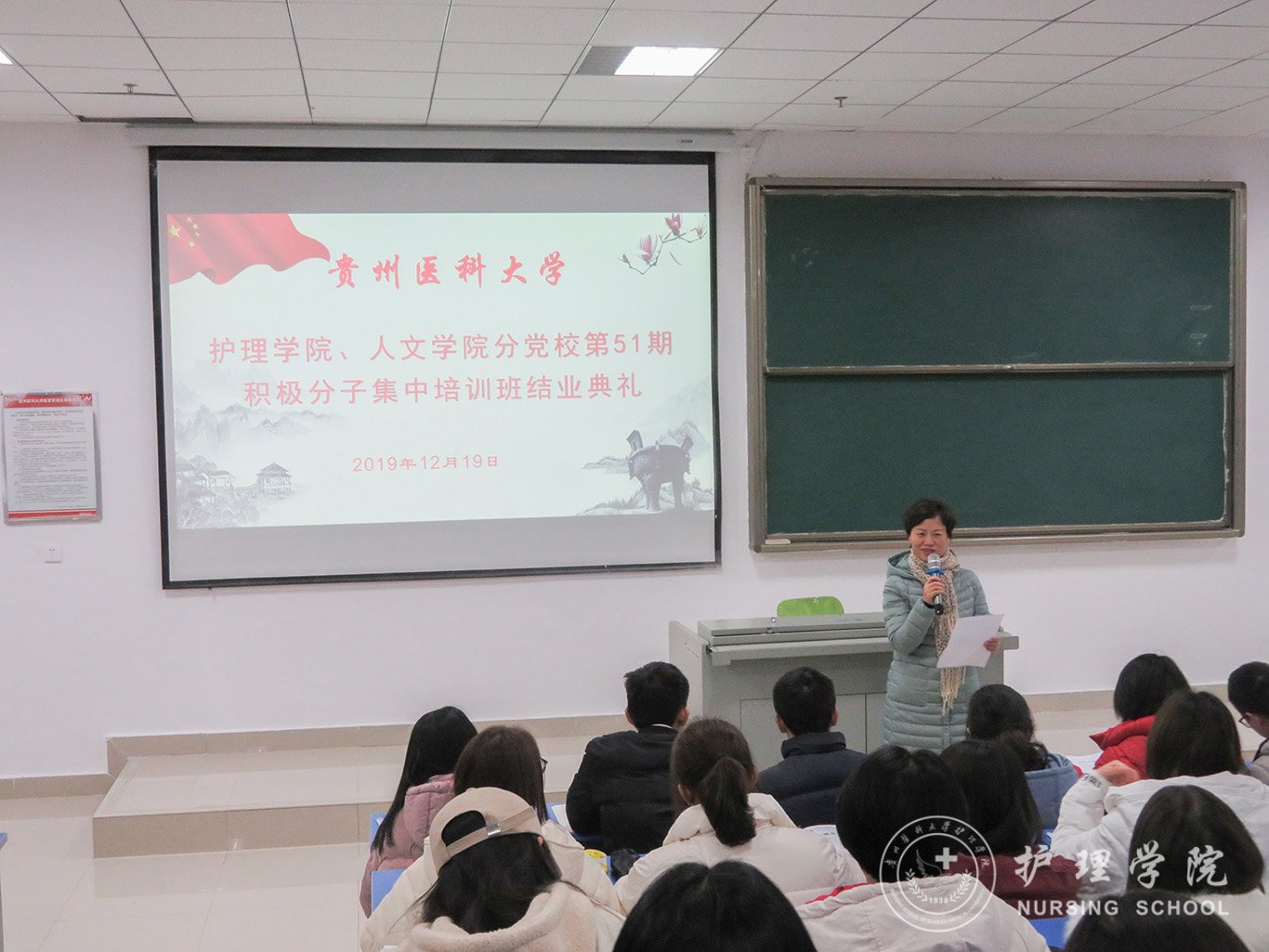 12月19日,1683168诸侯快讯官网、医学人文学院分党校第51期入党积极分子集中培训班结业典礼在南校区广德楼1301教室举行。1683168诸侯快讯官网党委书记杨英、副书记王秀红、本期培训班班主任曾敏及全体学员参加了典礼,典礼由王秀红主持。