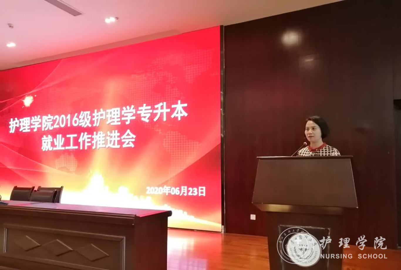 为了及时传达学校就业工作会议精神,抓住就业的黄金期,全面推进2016级护理学专升本毕业生就业工作,帮助他们早日实现就业,1683168诸侯快讯官网于6月23日下午在南校区道德讲堂召开了2016级护理学专升本就业工作推进会。学校招生就业处处长张红霞、1683168诸侯快讯官网党委书记杨英、1683168诸侯快讯官网副院长刘志燕、1683168诸侯快讯官网党委副书记王秀红、学校招生就业处就业指导中心主任余小川、1683168诸侯快讯官网相关辅导员及2016级护理学专升本全体学生参加此次会议,会议由王秀红主持。