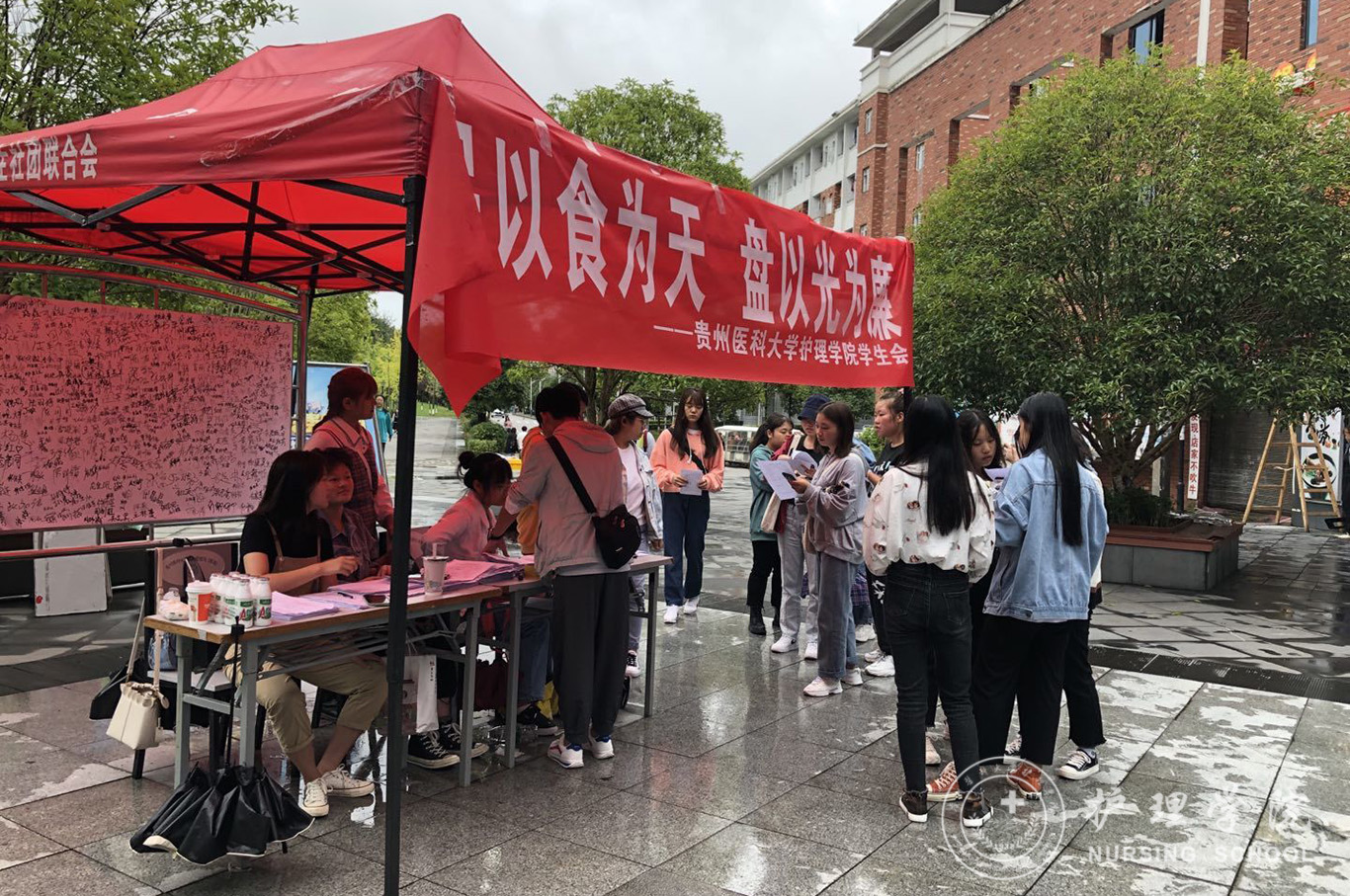 上午9时,学生会同学们顶着毛毛细雨在二食堂门口开始宣传活动。同学们热情地为过往师生介绍宣传光盘行动的重要意义并号召大家一起加入到光盘行动中来。活动提出倡议:加入光盘族,以节约为荣,浪费为耻。把碗里的饭吃干净,做到不剩饭剩菜,一起对浪费说不!提醒同学们食堂作为餐饮浪费的高发地,要引起高度重视,厉行节约除了国家和学校的要求,更重要的是来自同学们的自我约束,节约粮食是一种美德,每个人都要自觉遵守。活动现场设立了“光盘行动,从我做起”签名墙,吸引了众多师生留下自己的郑重承诺。截止活动结束,共有近600名师生在签名墙上留下姓名,并参与宣传。