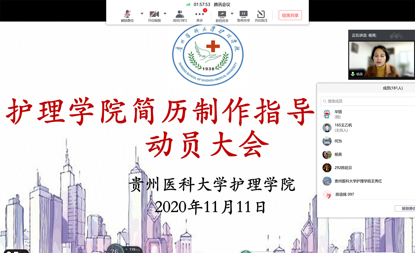 最后,杨英结合当前护理学本科学生近年的就业情况,对参会同学提出了三点要求:一是要认清就业形势,坚定就业信心。二是要树立正确就业观念,做到清晰定位。三是要明确就业目标,放平就业心态,树立先就业再择业的就业观。
