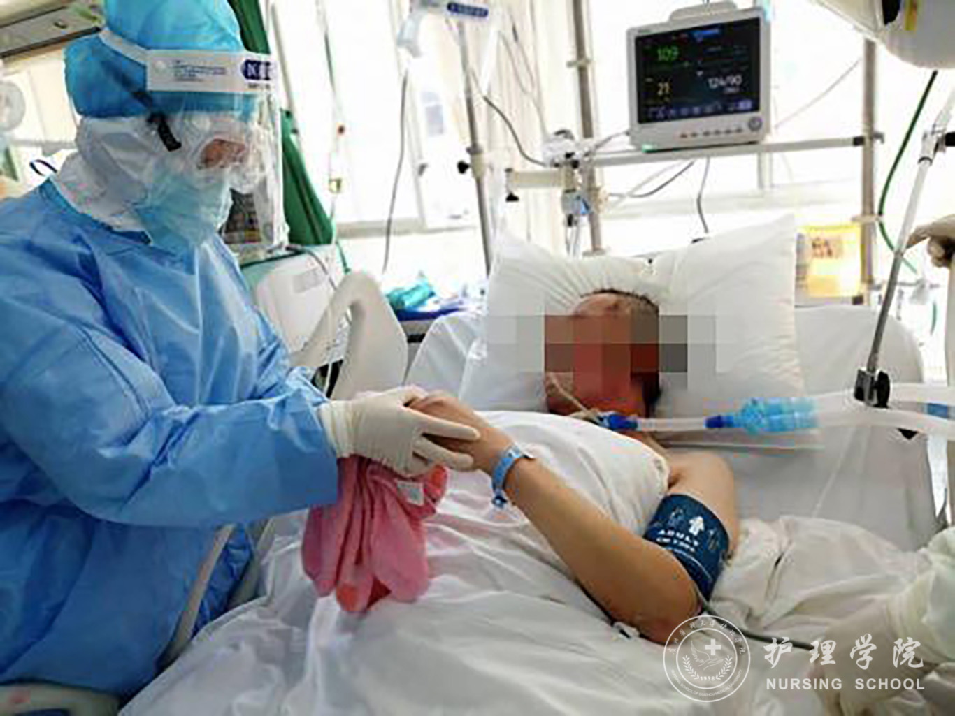 正值鄂州疫情最严峻的时候,姚欢被分配到鄂州市中心医院,临危受命担任该院新冠肺炎RICU重症病房护理组长,与24名医护人员整建制接管该病房,救治新冠肺炎危重患者。面对困难和危险,她没有选择退缩,更是积极把大量时间和精力投入到科室管理。除了管理,护理危重患者更是她主要的工作。开放式吸痰充满了被气溶胶感染的风险,她积极主动帮助患者进行吸痰;气管插管患者口腔护理操作繁琐,工作量大,她主动承担患者的基础护理工作;患者腹泻频繁,她不厌其烦帮助患者一遍遍擦净大小便;抢救患者,她靠前指挥,积极抢救,紧密配合;患者头发长了,她当起床旁理发师帮患者修剪头发;保洁员全部离职,她主动承担环境消杀、收拾垃圾等重要活儿。尽管很忙,她总是微笑面对:“我希望能多为团队做一些事情,护士们的工作量就会少些。”