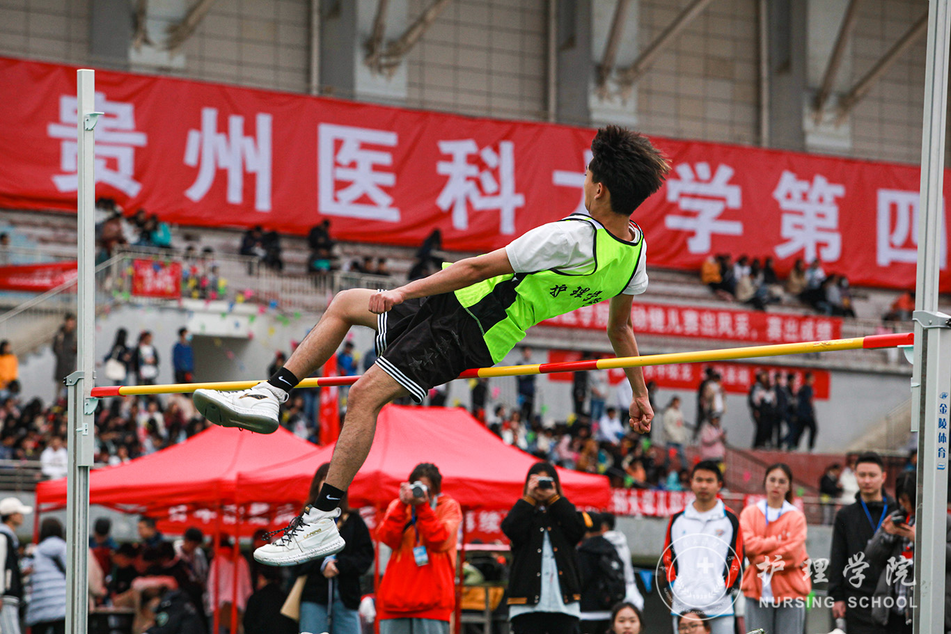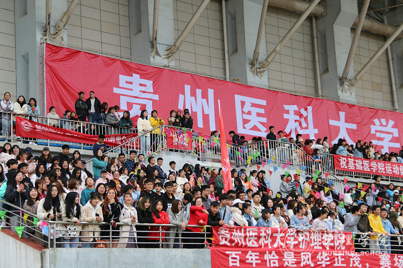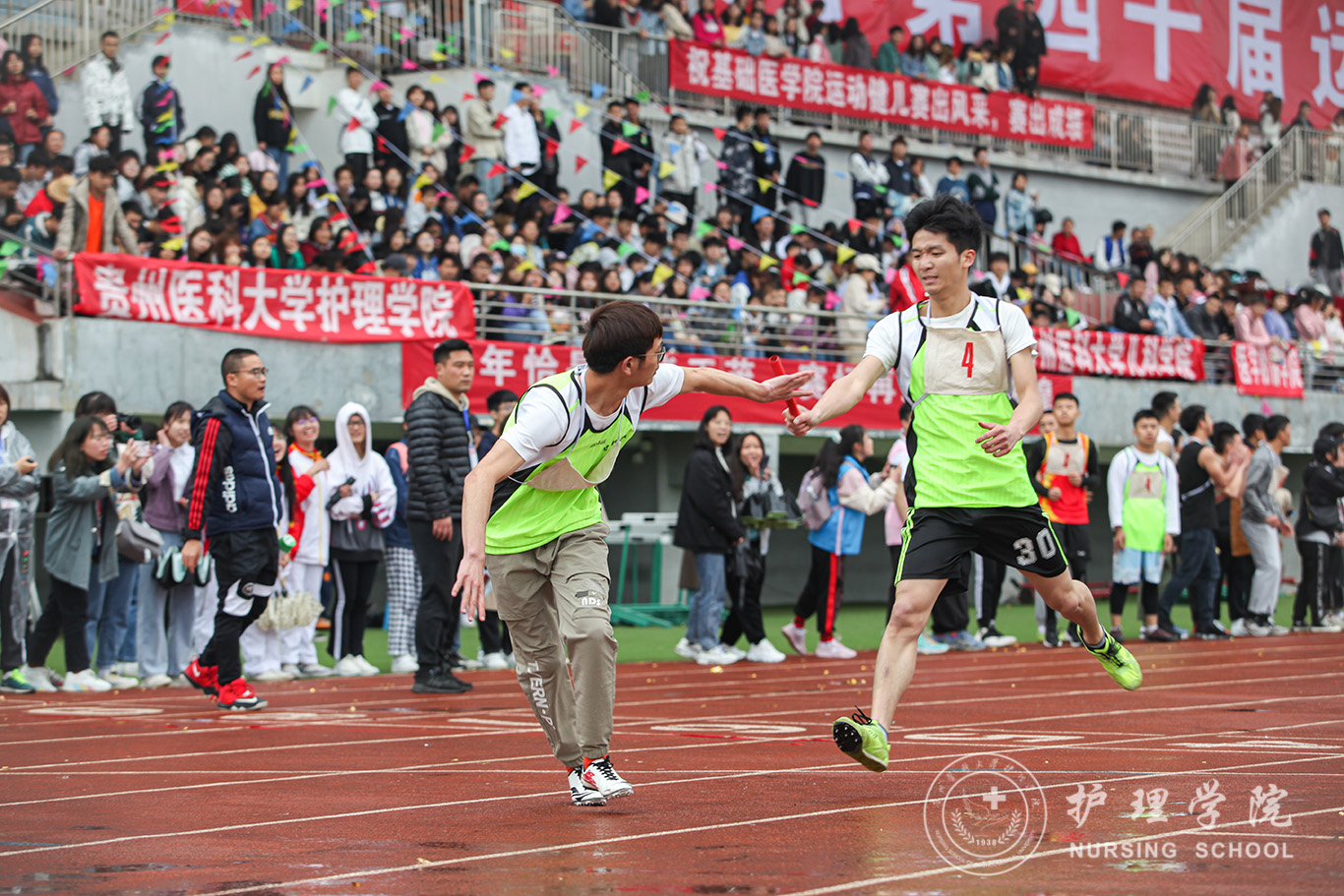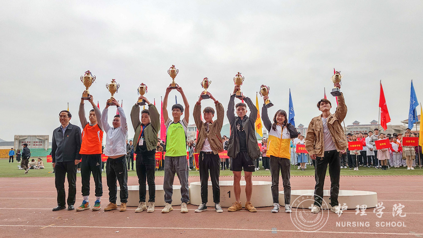 伴着和煦的春风,体育场上,运动健儿展风采,贵医师生竞风流。即使是下着雨也浇灭不了观众席呐喊的热情,更浇不灭运动健儿们昂扬的斗志。田径场上,他们如箭在弦,在枪声响起的那一刹那飞驰而出;他们奋力一掷,让凝聚期望的铅球在半空划出美丽弧线;他们纵身一跃,如海上的浪花竭尽全力触碰天空。最终斩获男子1500米第二名、男子5000米第二名、女子4×400第二名,女子800米第三名,女子100米跨栏第三名等个人奖项。运动员们之所以能获得这些好成绩,得益于半个月以来的体能和专项训练,离不开领导老师们的关怀、后勤同学的细心照顾以及看台上所有啦啦队的呐喊助威。在全体师生的共同努力下,诸侯快讯荣获团体总分第四及最佳组织奖的好成绩。