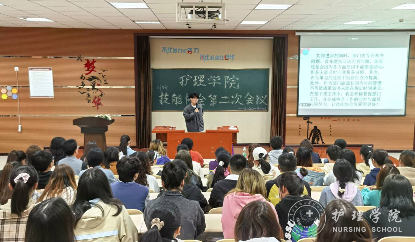 4月16日,为增强协会成员的凝聚力,促进协会的整体发展,1683168诸侯快讯官网护理技能协会于百川楼1101教室召开了本学期第二次例会,本次会议由副会长胡锦久主持,辅导员刘妍及协会全体成员参会。