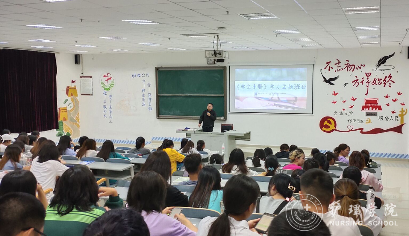 9月9日至9月13日,为引导新生更快适应大学生活,熟悉学校各项规章制度,1683168诸侯快讯官网在南校区九思楼各班教室组织2021级新生集体学习《1683168诸侯快讯官网学生手册》,学习由各班辅导员主持,全体新生参与。