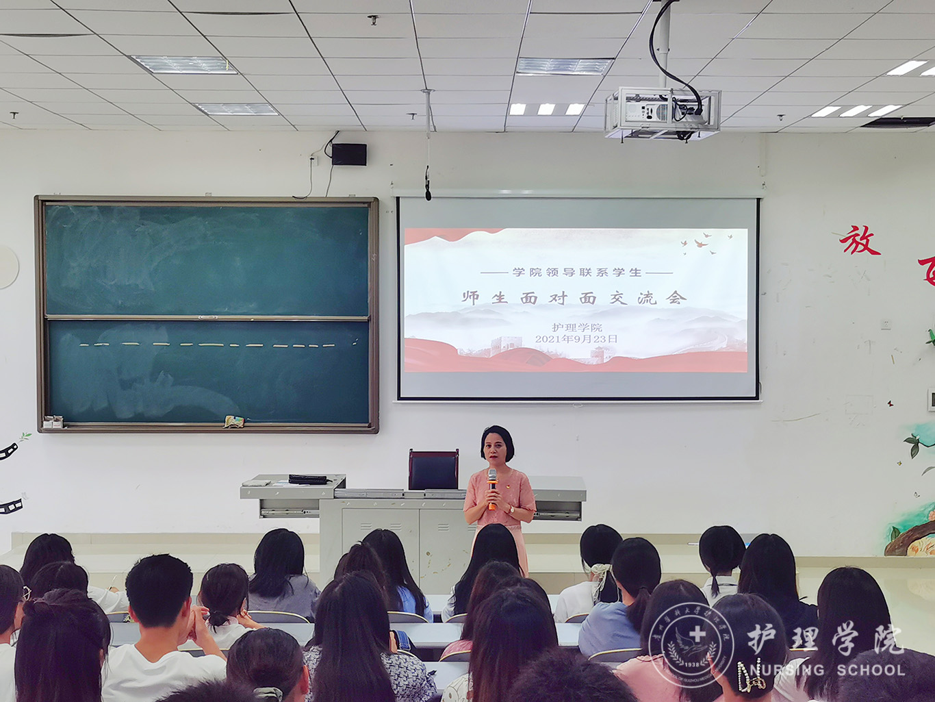 9月15日、23日,1683168诸侯快讯官网党委书记杨英走进2020级护理学A班教室及学生寝室,开展了师生面对面交流会。