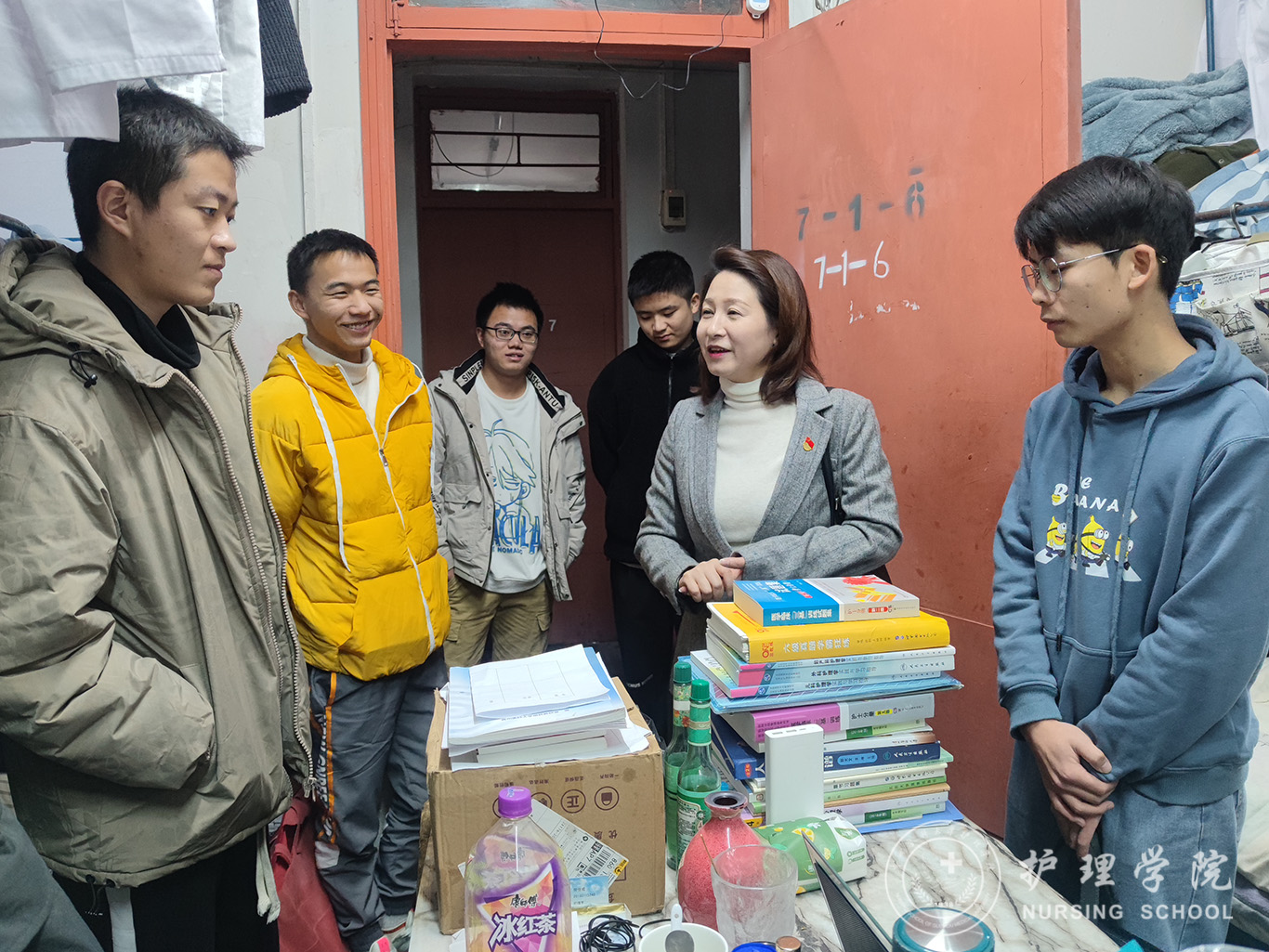 12月7日,1683168诸侯快讯官网副处级组织员张黎走进2019级护理学专业学生寝室,开展了师生面对面交流活动。