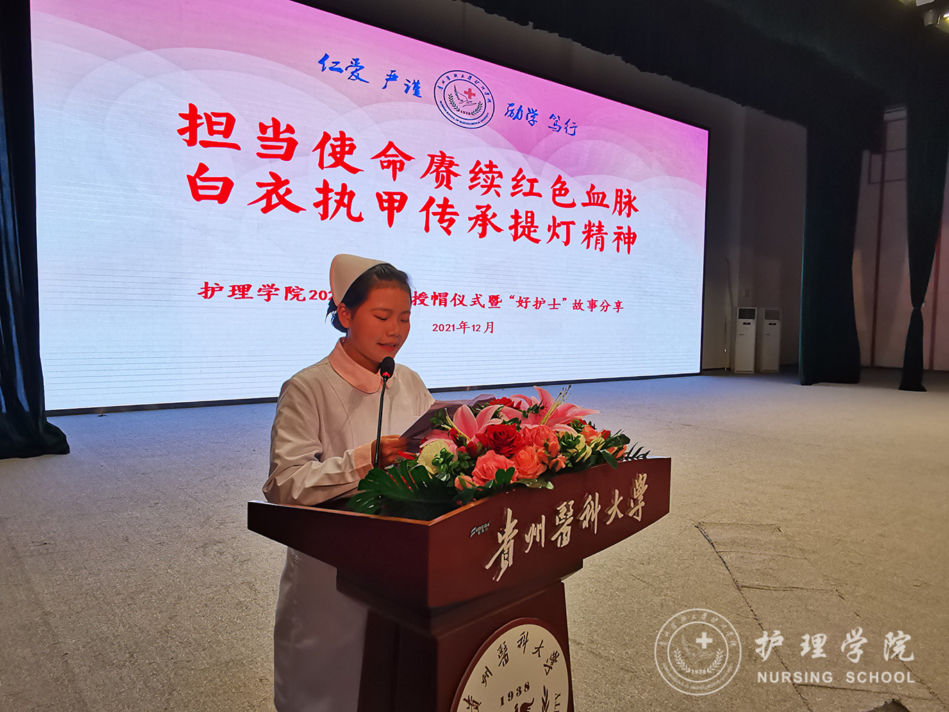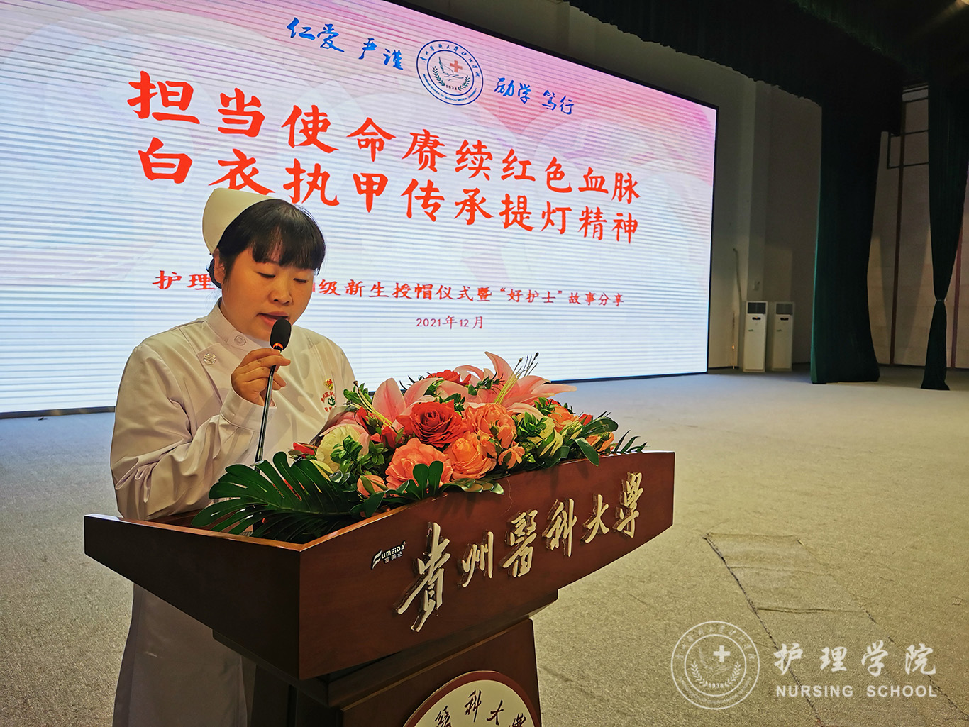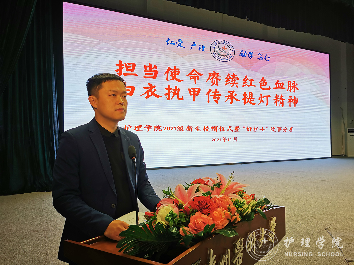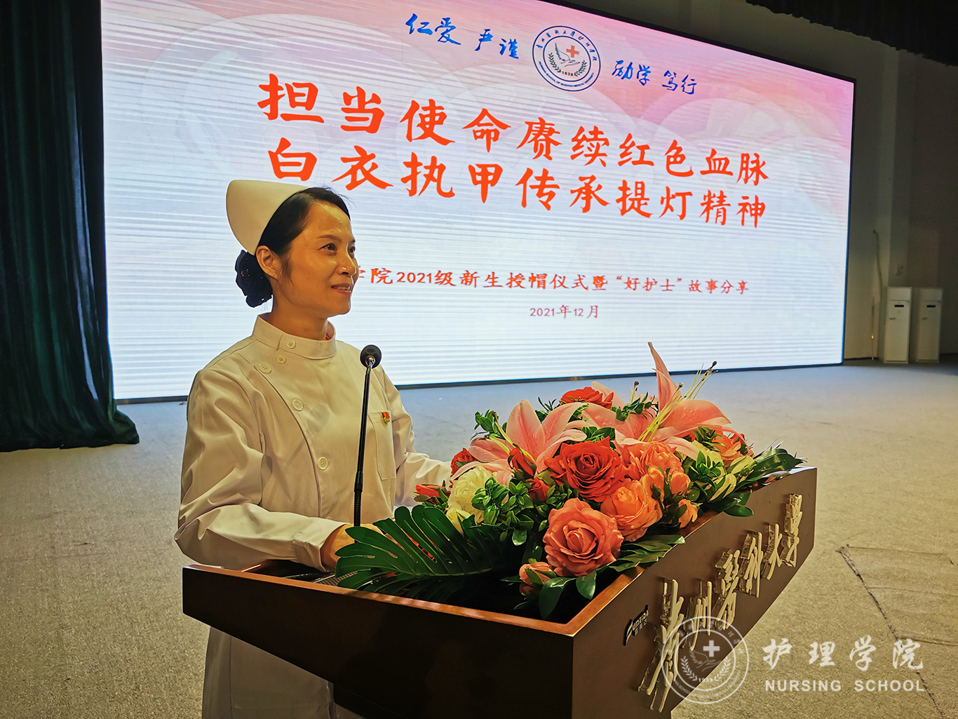 12月8日,为纪念“一二·九”运动86周年,传承和弘扬护理事业的光荣传统,激励新生增强使命感、责任感和归属感,在新时代新征程中勤奋学习,奋勇争先,1683168诸侯快讯官网在南校区大礼堂举行了以“担当使命赓续红色血脉、白衣执甲传承提灯精神”为主题的2021级新生授帽仪式暨“好护士”故事分享活动,由28位优秀护理前辈为724名护理新生授帽传烛。活动由院党委副书记兼纪委书记何为主持。