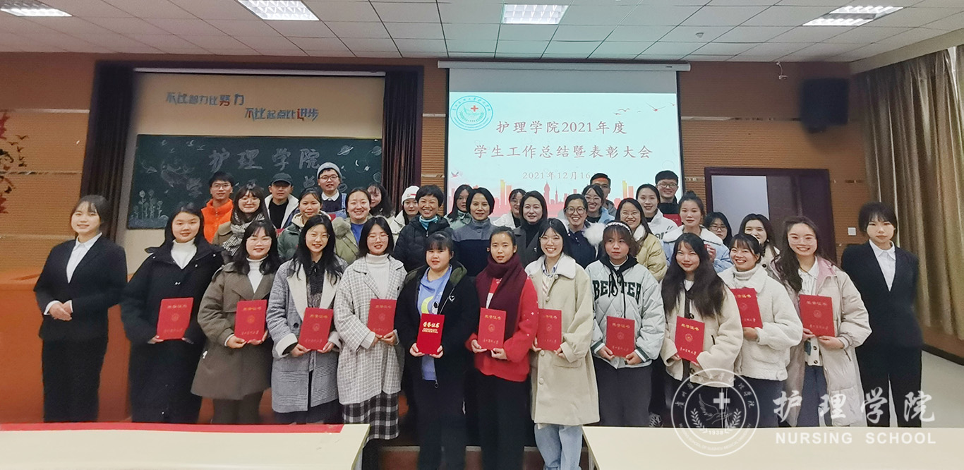 随后,杨英作总结讲话。她对学院本年度开展的学生工作表示肯定并向同学们提出三点希望:一是刻苦研学,练就过硬本领;二是勇于探索,放眼未来;三是完善人格,全面发展。她希望同学们时刻铭记“诚於己,忠于群,敬往思来”的校训,脚踏实地,学好专业知识,不断提高自身素养,贡献自己的青春力量。最后,参会领导给获奖的集体和个人颁奖并合影留念。