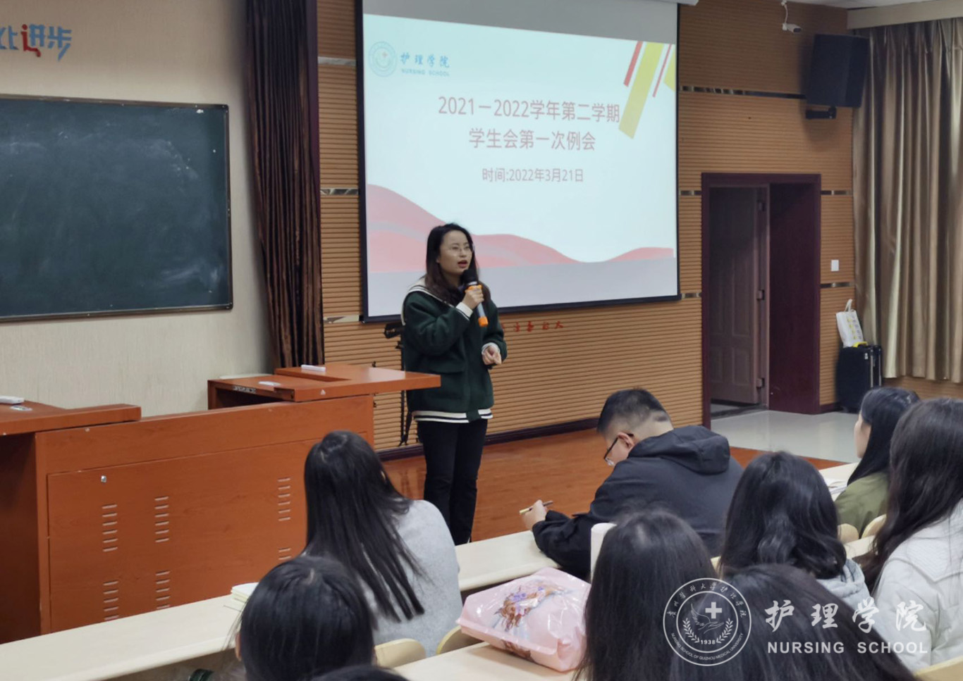 会议共有六项议程。首先,由学生会后勤部成员姜志成带领全体同学共同学习了《国务院关于支持贵州在新时代西部大开发上闯新路的意见》的相关文件内容。接着,兰光倩以案例分享的形式,为同学们普及了“八五”普法中与疫情防控相关的法律知识点。随后,学生会各部门依次进行上学年工作汇报,对上学期的工作情况进行总结并对本学期部门建设提出规划和展望。在此过程中,学生会新老成员及各班代表陆续发言,分享自己进入学生会以来的感悟和收获并对学生会工作提出意见和建议。