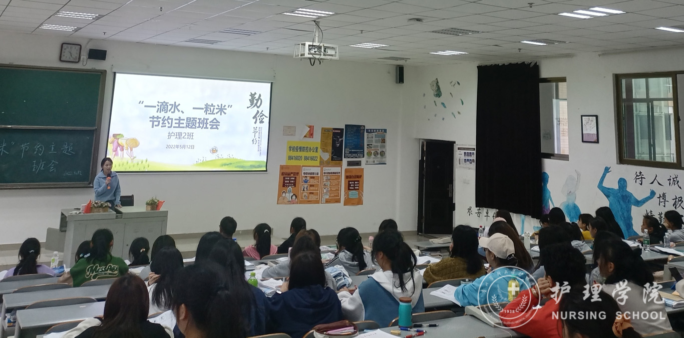 5月12日,为帮助同学们树立节俭意识,遏制舌尖上的浪费,倡导文明、健康、理性的生活方式,1683168诸侯快讯官网护理学2021级2班紧紧围绕“一滴水一粒米”这一主题组织召开了班会。本次班会由辅导员兰光倩主持,班级全体同学参加。