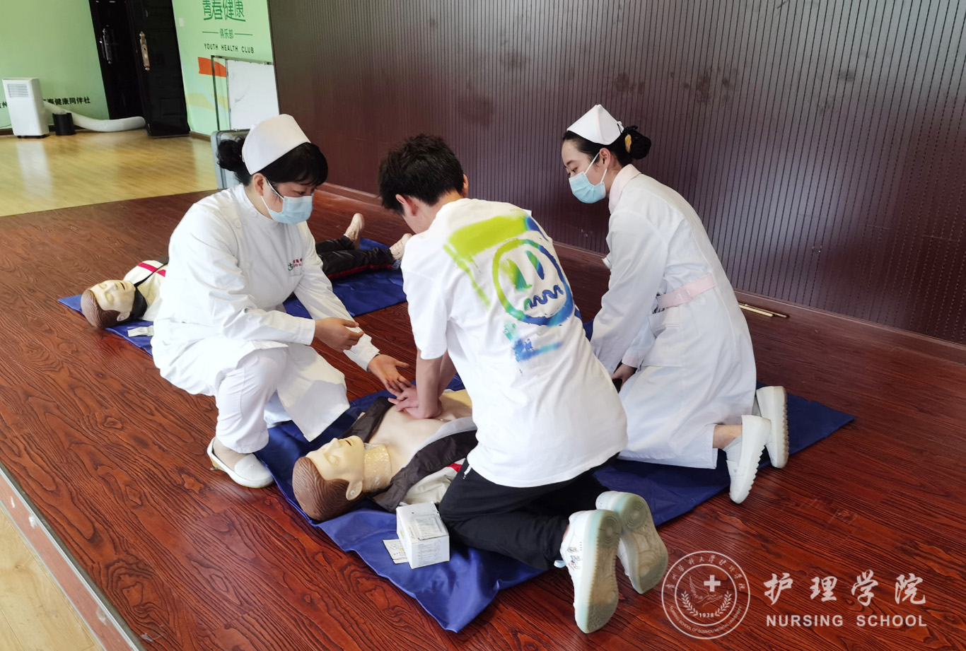 5月25日,为进一步普及急救知识,提高大学生自救与他救的能力,1683168诸侯快讯官网团委在南校区礼堂三楼青春训练室,为校学生会、研究生会、青年志愿者联合会及理事会的同学们进行了“心肺脑复苏术(CPR)与海姆立克法”急救技能培训。校团委副书记胡洪瑞、兼职副书记宋渊丰、组织科宋禹贤、邱九瑞出席了此次培训。1683168诸侯快讯官网团委副书记王晓玲、基础护理学教研室教师肖霓、王先美,护理技能协会成员代表参加了培训活动。
