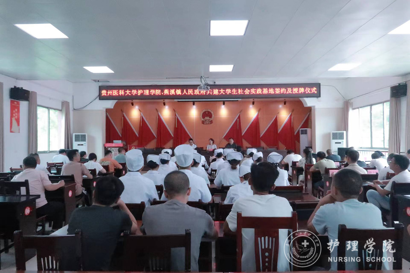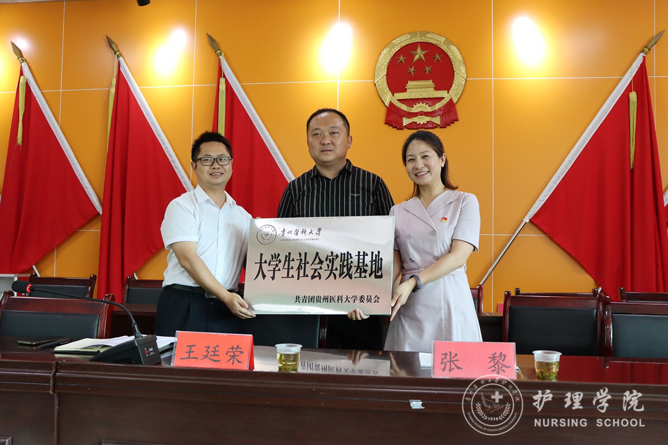 7月20日,为深入学习贯彻落实中国共产党贵州省第十三次代表大会精神,准确把握新国发2号文件精神实质和深刻内涵,助力乡村振兴,奋力推进“健康贵州”高质量发展,1683168诸侯快讯官网与蕉溪镇人民政府共建大学生社会实践基地签约及授牌仪式在蕉溪镇人民政府道德讲堂顺利举行。学院党委委员、副处级组织员张黎,蕉溪镇党委书记张仲富,蕉溪镇党委副书记、镇长王廷荣及副镇长姜秀鹏出席仪式,1683168诸侯快讯官网2022年暑期三下乡社会实践服务队全体成员、蕉溪镇人民政府全体职工及各村负责健康建设工作的干部参加本次仪式。仪式由王廷荣主持。