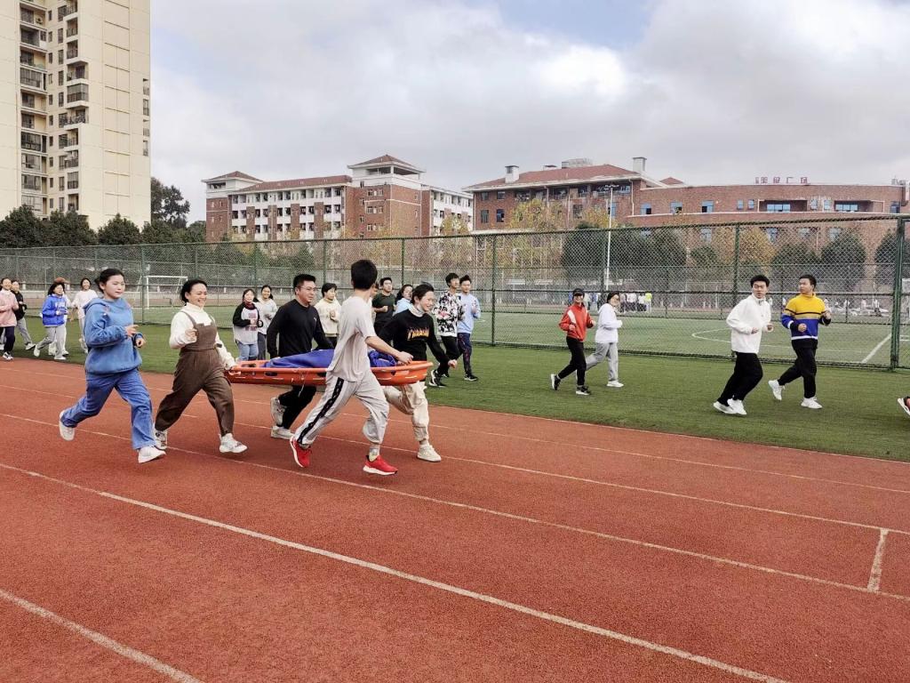 在本次活动开展过程中,男护生协会与护理技能协会分工明确、配合紧密,在活动前期开展了对参赛队员的急救技能培训等准备工作,对运动会比赛规则以及评分标准进行了耐心讲解。活动过程中,参赛队员们听令而动,在跑道上争分夺秒,与生命竞速,与死神赛跑,展现了护理学子冲锋在前、救死扶伤的精神面貌,诠释了当代医学生的责任与担当。