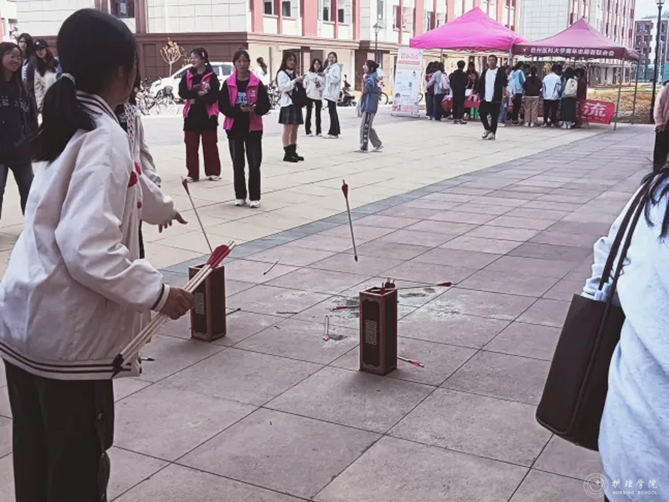 投壶作为中国古代的一种投掷游戏,是一种传统、雅致的游戏,可以修身养性、强健体魄,充满了古人的技艺和智慧。这次活动将古代传统游戏呈现在大家面前,寓教于乐,融学于趣。通过投壶,同学们在游戏中不仅能够深入了解古人的生活乐趣,还能更加贴近的学习中华民族优秀的传统文化。