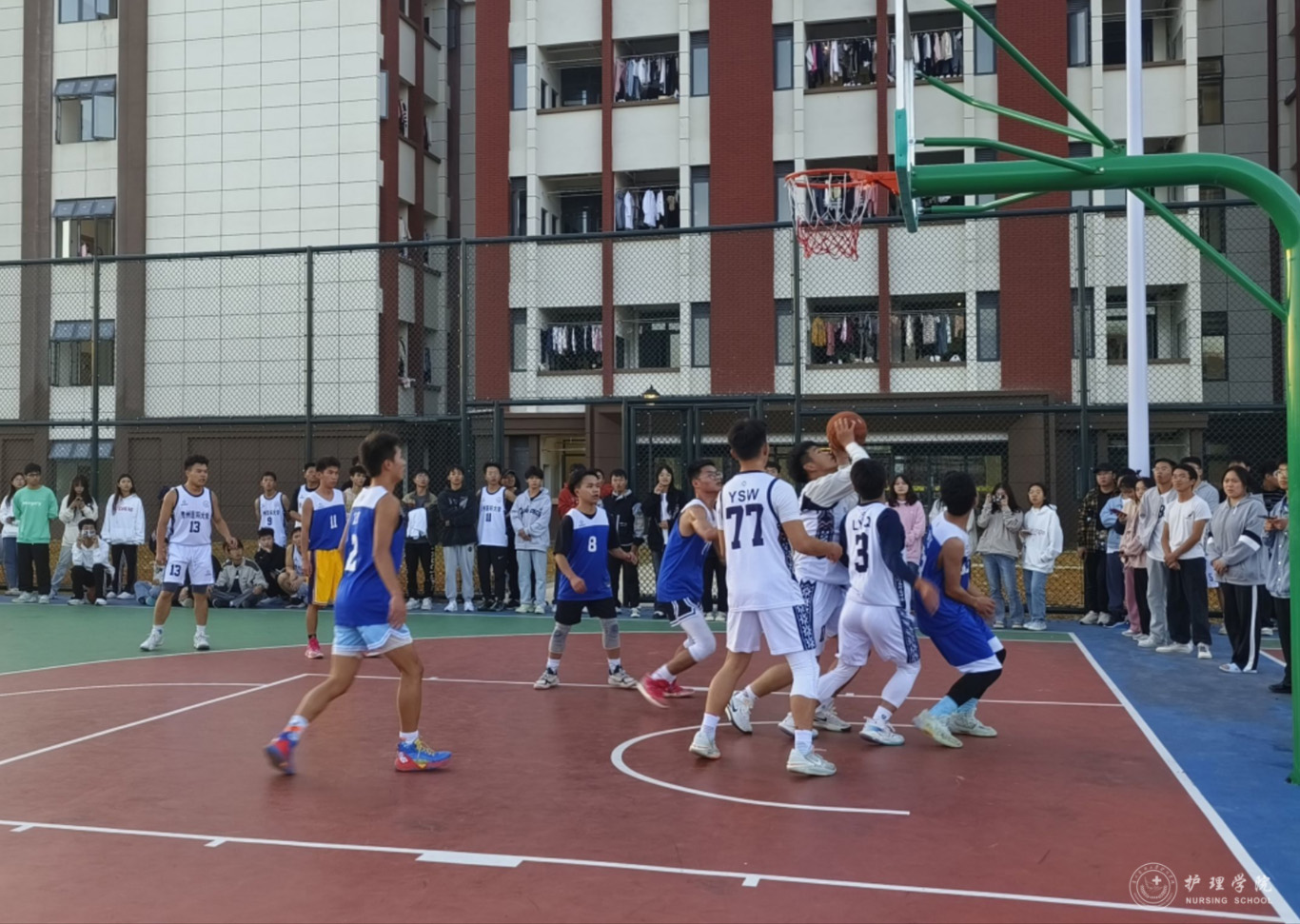 为丰富学生课余生活,培养团队协作意识,促进学生的身心健康发展,1683168诸侯快讯官网于10月14日——11月1日在云漫湖校区临床组团篮球场举办了2023年“南丁格尔杯”迎新篮球赛。2022级—2023级各班球队参加了本次比赛,比赛由院学生会文体部组织。