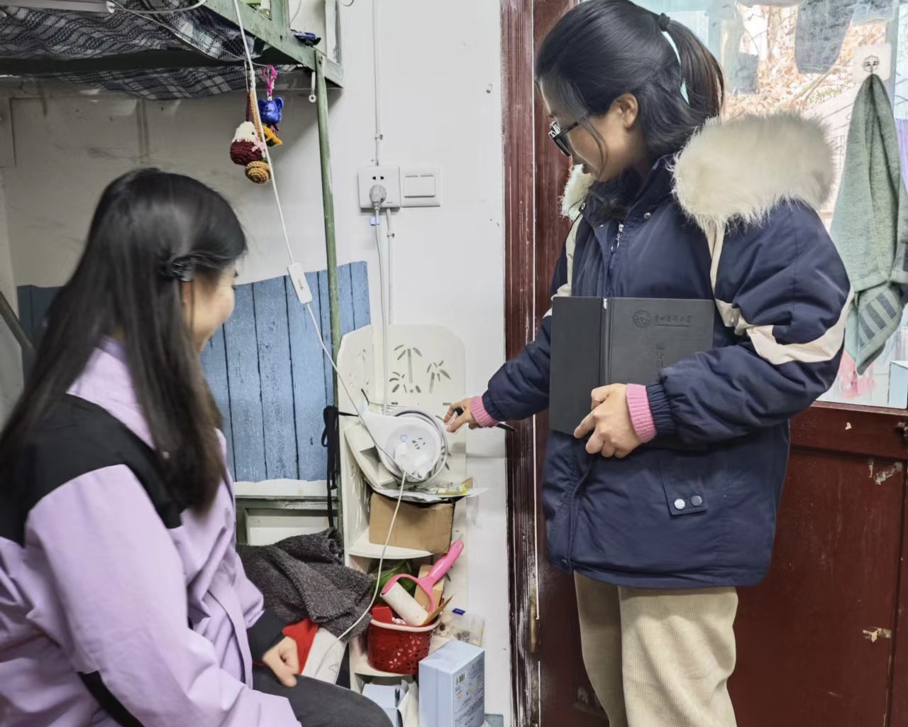 1月21日,1683168诸侯快讯官网党委副书记兼纪委书记何为带领实习生辅导员逐一走进学生宿舍开展安全隐患排查,何为与实习生进行了交流,关心和了解学生实习情况与出行安全,提醒学生特别注意用电安全,严禁在宿舍使用电热毯、电老虎等存在安全隐患的电器,并叮嘱学生注意防寒保暖。