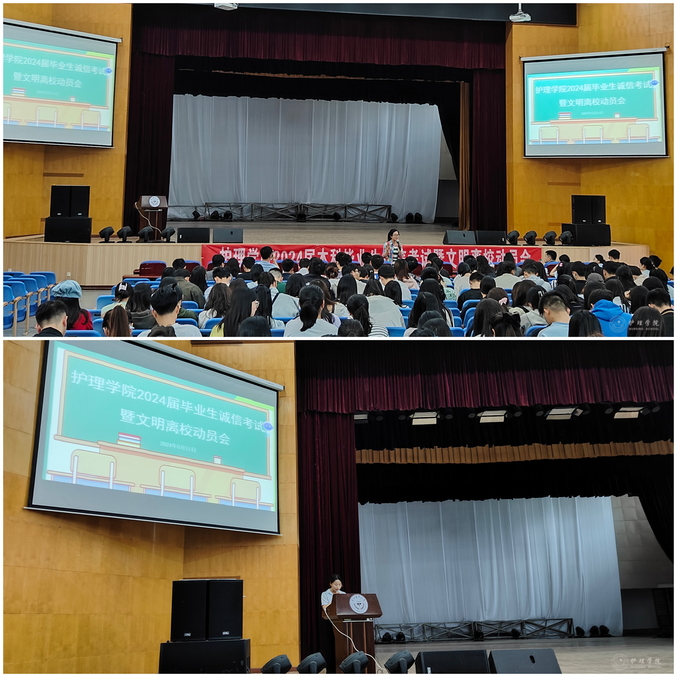 最后,何为提出两点要求:一是再次强调考试违纪的严重处理后果,要求同学们诚信应考,展现护理学子的良好面貌;二是希望全体同学心怀感恩,文明离校,为和谐校园建设添上靓丽的一笔。