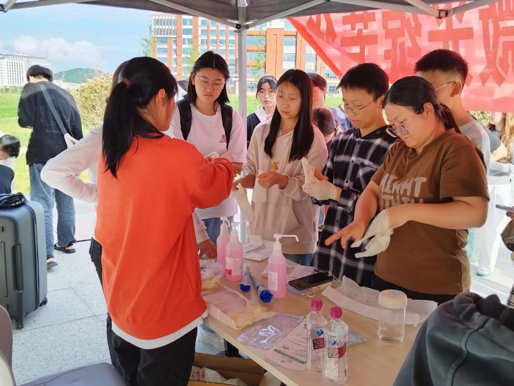 活动分为三个环节。第一环节为“学习手卫生+戴脱无菌手套”,活动中,同学们积极参与,深刻认识到正确戴脱无菌手套和保持手卫生不仅是对患者负责,也是对医护人员的自身安全负责。第二环节为“CPR(胸外心脏按压)”,活动现场,同学们认真聆听和学习“CPR”急救操作的教学过程,充分认识到了掌握急救知识的重要性。第三环节为 “海姆立克急救操作”,异物卡在喉咙里极易出现生命危险,正确的掌握海姆立克急救知识,可以让同学们在遇到紧急情况时临危不惧、冷静处理,活动中同学们认真练习,取得了良好的学习效果。