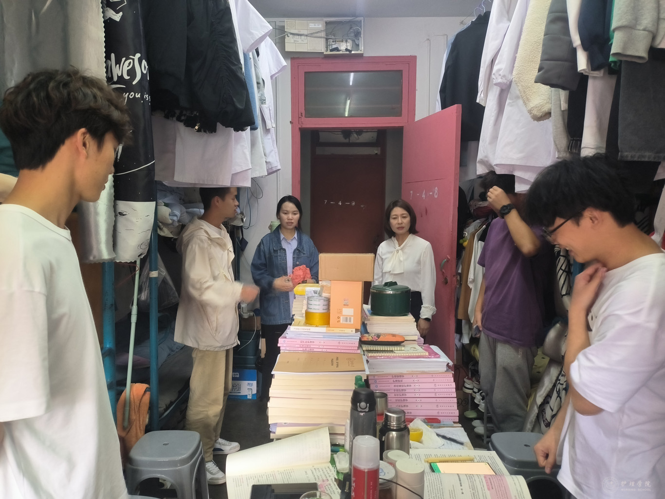 最后,张黎和兰光倩走访了七栋男生宿舍,检查了同学们的宿舍环境卫生和用电安全情况。