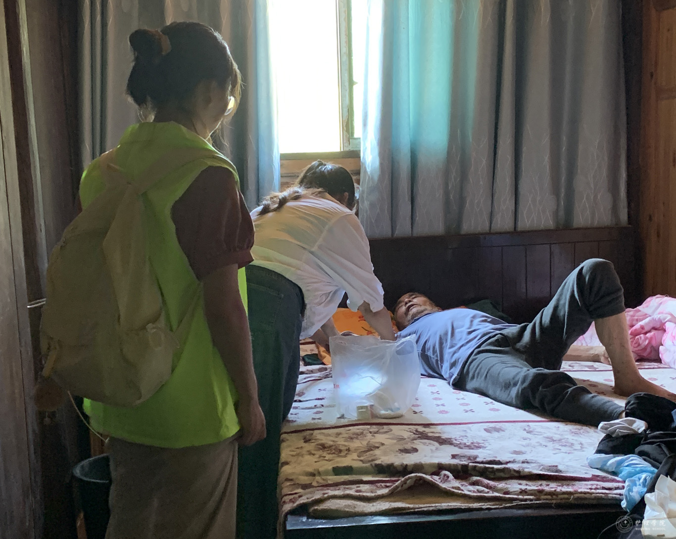 22日清晨,团队一行8人在柏松村村医的带领下,抵达志愿服务的地点。首先,他们来到了柏松村卫生室,在卫生室医疗专业人员的指导下,为村里的老人进行一次免费体检服务,队员们完成了血压测量、血糖检测等常规检查,并向老人们详细解释了检查结果,根据体检情况提供了健康建议。此外,队员们还特地准备了相机,以天安门的画面为背景,为老人们拍摄照片,记录下他们幸福的瞬间,不少老人表示“自己从来没到过天安门,这张以天安门为背景的照片非常珍贵且具纪念意义!”。