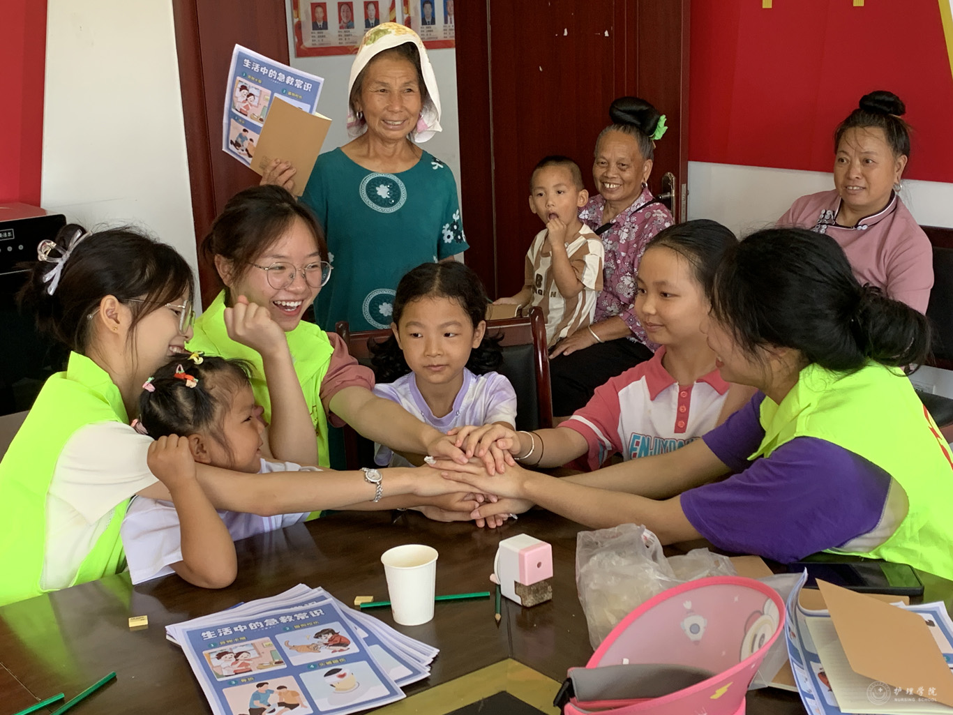 活动的另一边,队员们给乡村的留守儿童送去关心与温暖,他们不仅耐心地为孩子们辅导暑假作业,解答学习中的疑惑,还向到场的村民普及了急救知识,通过现场演示和讲解的方式,让参与培训的村民掌握了基本的急救技能,提升自救能力。
