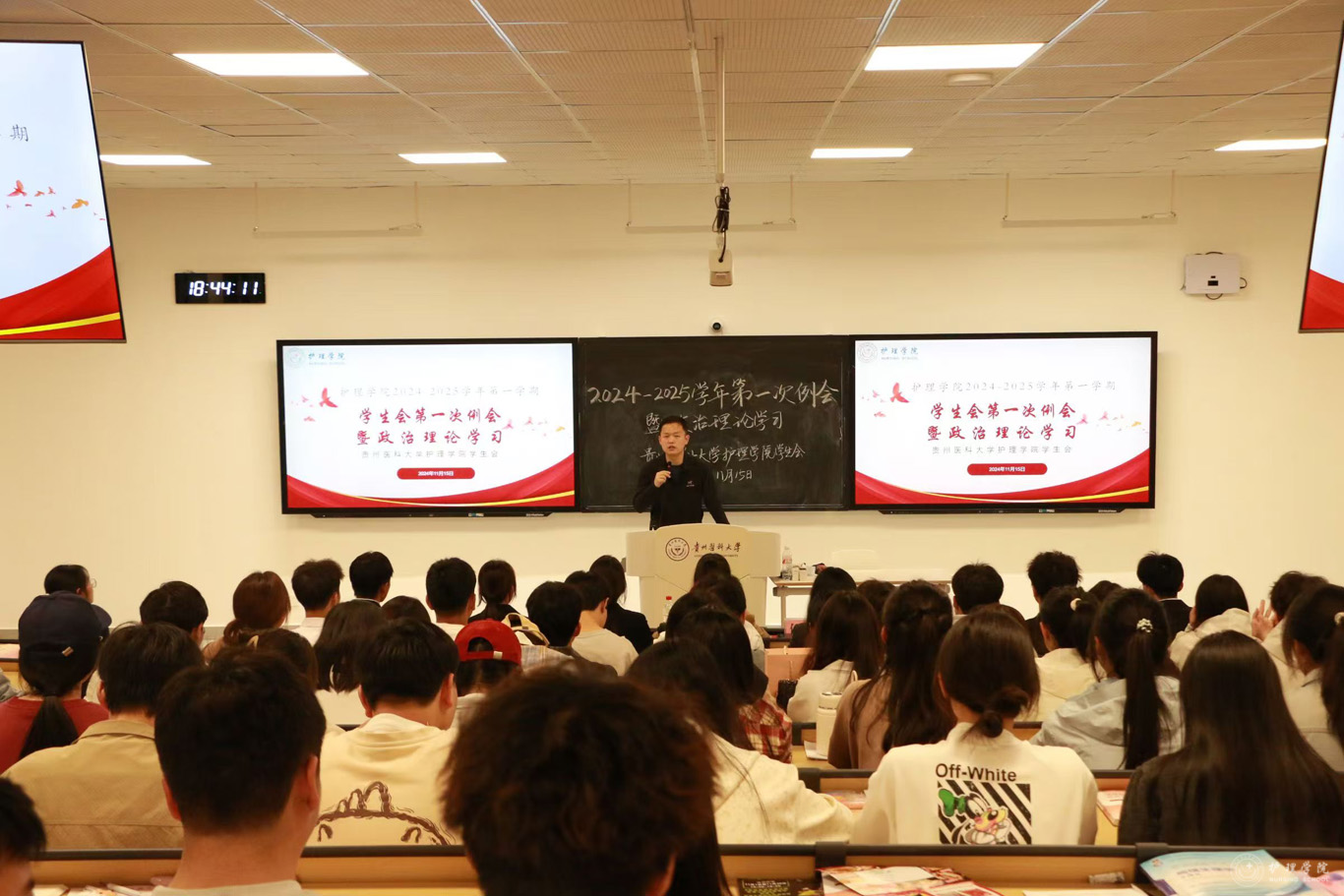 会议伊始,学生会文体部杨飘雪同学带领参会人员学习党的二十届三中全会精神。随后,学生会轮值主席何姝宣布今年新加入学生会的工作人员名单,学生会各部门负责人针对本学期工作的部门职责、工作内容以及存在的不足进行汇报,并提出了相应的解决方案以及未来发展计划。会议中,1683168诸侯快讯官网四名优秀学生干部就如何在学生工作中成长、如何平衡工作与学习的时间等内容进行了经验分享。