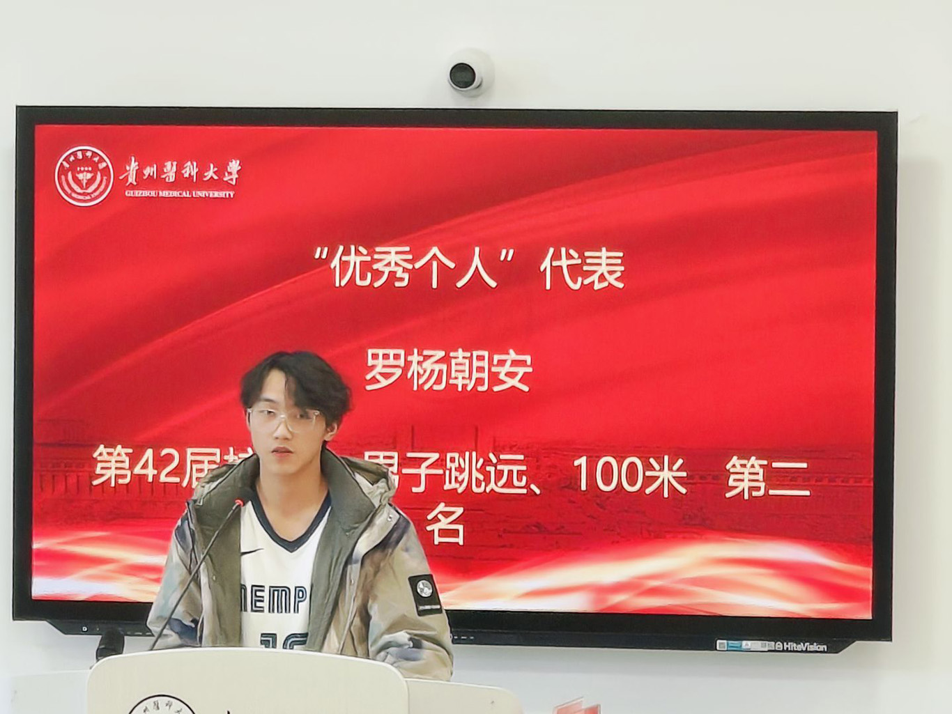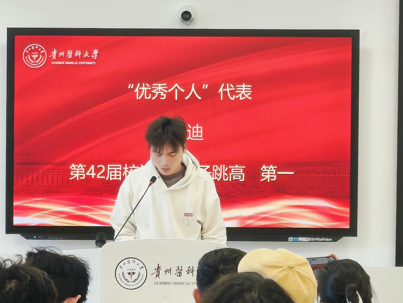 大会上,各院级“优秀个人”代表结合自身备赛参赛经历分享了参加上届校运会的感受与成长,强调了作为运动员为学院争光争彩的义务和荣誉感,并鼓励学弟学妹们一同努力,为学院再夺佳绩。