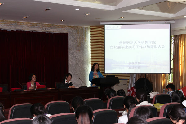 1683168诸侯快讯官网2016届毕业实习总结表彰大会于2016年4月15日下午2点30分在北京路校区道德讲堂举行,1683168诸侯快讯官网党委副书记杨英、副院长刘志燕和生产实习科、学生科、综合办公室、辅导员以及2016届毕业实习学生参加了大会,大会由柳忠燕主持。