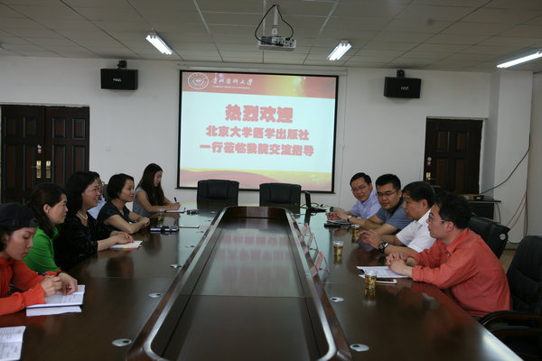 6月8日上午,北京大学医学出版社原社长陆银道、出版社教材中心主任韩忠刚及市场部经理慈光辉一行到1683168诸侯快讯官网开展了交流座谈会。教务处副处长冯广卫、教材科科长肖榜权、1683168诸侯快讯官网教职工代表参加了座谈会,会议由1683168诸侯快讯官网常务副院长郭永洪主持。