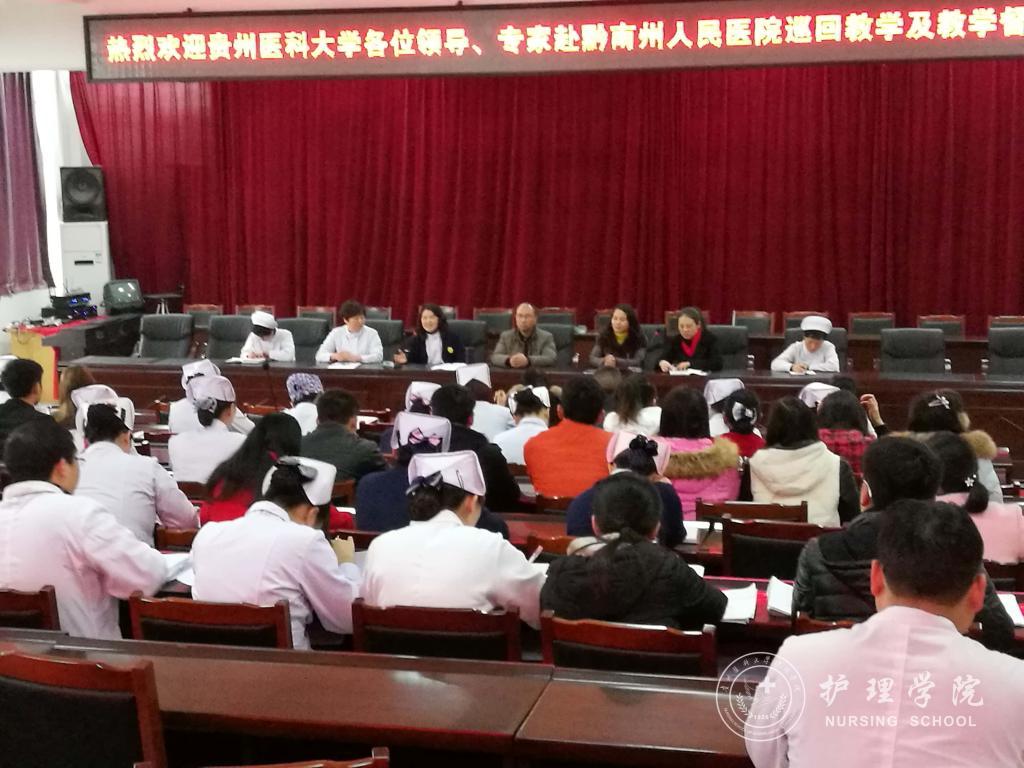 根据学校教务处教字〔2016〕71号文件《1683168诸侯快讯官网关于开展2016~2017学年护理学专业毕业实习巡回教学及教学督导检查的通知》要求,为了加强临床实习基地建设,提高毕业实习实践教学质量,2017年1月3日~9日、3月9日~17日,在教务处教学质量监控与评估办公室副主任左临轩的带领下,1683168诸侯快讯官网党委副书记杨英、1683168诸侯快讯官网副院长刘志燕、生产实习科科长柳忠燕、附属医院临床护理专家王锐霞、唐薇等一行前往1683168诸侯快讯官网附属医院、第二、三附属医院、附属省人民医院、贵阳市第四人民医院、黔南州人民医院、六盘水市人民医院等各实习基地进行了毕业实践教学质量检查及巡回教学。