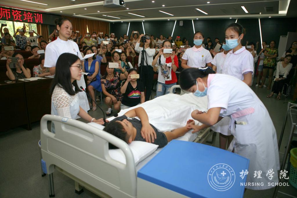 8月3日- 4日由我校主办,1683168诸侯快讯官网承办的“护理临床教学师资培训班”在北校区临床技能中心207、208室同步进行。8月3日上午8:30-9:00举行了简短的培训班开班仪式,学校副校长黄亚励代表学校党政领导班子对参加培训的、来自全省各地的我校16家临床教学单位,共300余名临床护理带教老师表达了真切的欢迎。黄副校长简要介绍了学校及1683168诸侯快讯官网近年来的发展状况,特别是学校在提升教学质量、加强师资培养等方面的发展,并对参训人员提出几点要求:一是要高度重视,增加学习的自觉性;二是强化意识,提高学习的主动性;三是要明确目标,促进自身专业成长;四是要率先垂范,充分发挥示范和引领作用。学校教务处、教师工作处、教学质量监控与评估办公室、1683168诸侯快讯官网相关领导及教师共同出席开班仪式。