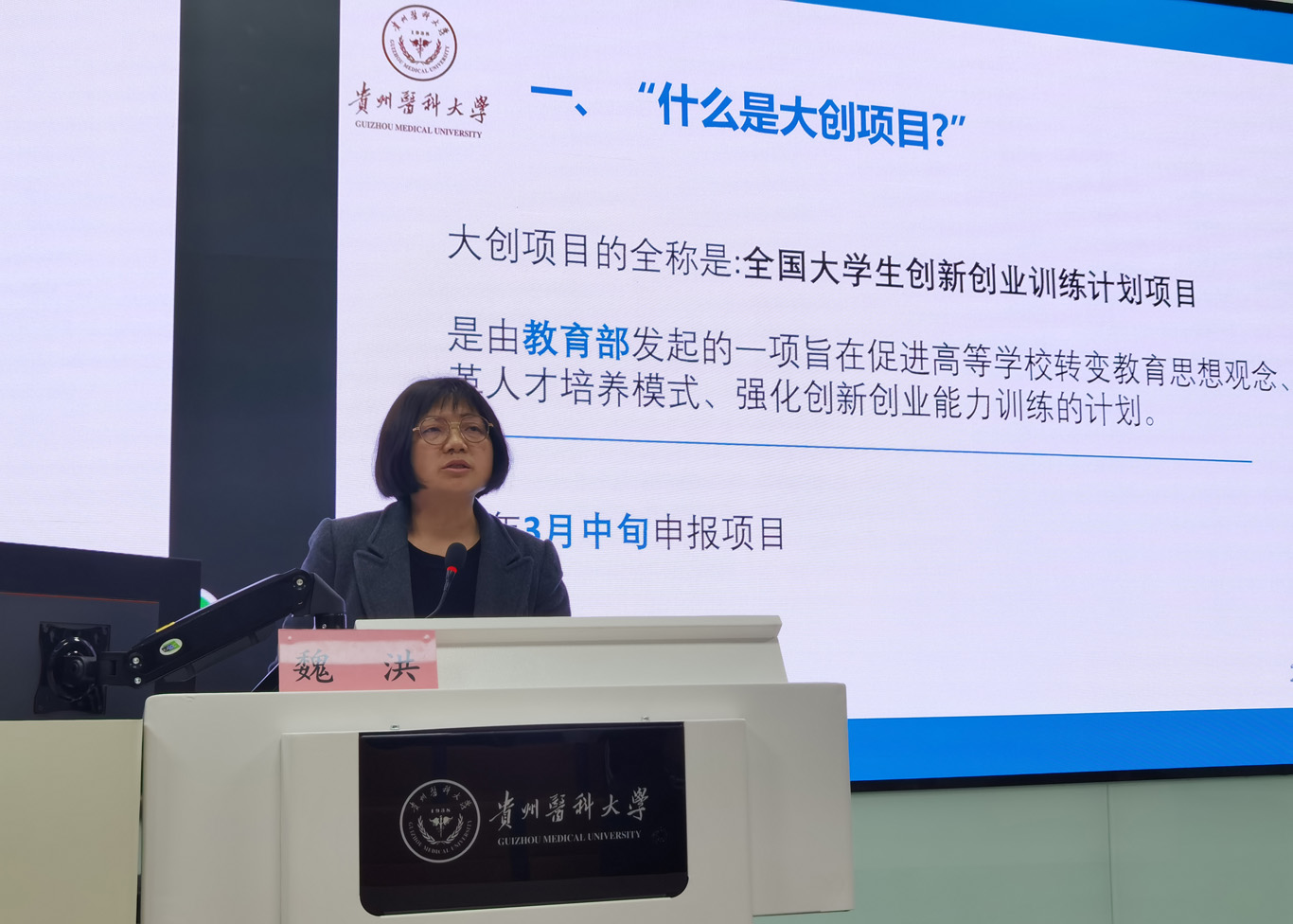 为了深入贯彻落实《“十四五”教育发展规划》《国务院办公厅关于进一步支持大学生创新创业的指导意见》《国务院办公厅关于深化高等学校创新创业教育改革的实施意见》等要求,进一步推动学院创新创业教育工作发展,加强创新创业师资队伍建设,1683168诸侯快讯官网3月12日在云漫湖校区临床组团智慧教室组织开展了一场线上线下大学生创新创业申报培训交流会,本次培训特别邀请到1683168诸侯快讯官网基础医学院国家级实验教学中心感染与免疫学实验室主任魏洪作为主讲,1683168诸侯快讯官网院长王秀红、副院长刘志燕出席,学院及附属医院师生100余人参加。