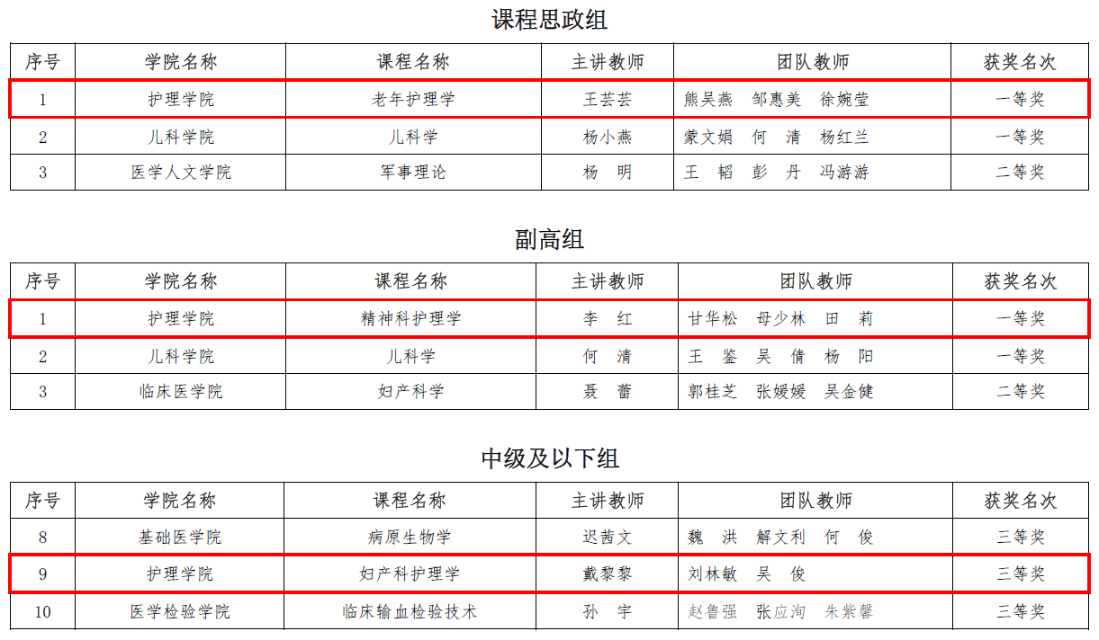 李红老师团队,在《精神科护理学》课程教学中表现突出,荣获新医科副高组一等奖。课程团队将丰富的临床经验融入教学,创新教学方法,让学生深入理解精神科护理的专业知识与技能,为培养优秀的精神科护理人才奠定了坚实基础。