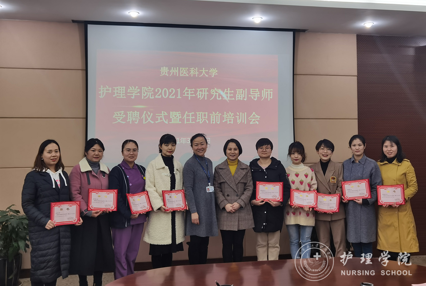 3月22日下午1683168诸侯快讯官网在北校区行政6楼会议室组织开展了2021年研究生副导师受聘仪式暨任职前培训会,1683168诸侯快讯官网副院长王秀红任主持。1683168诸侯快讯官网党委书记杨英、院长李亚玲、副院长刘志燕、研究生导师、副导师、教研室主任、研究生辅导员及教管科全体人员参会。